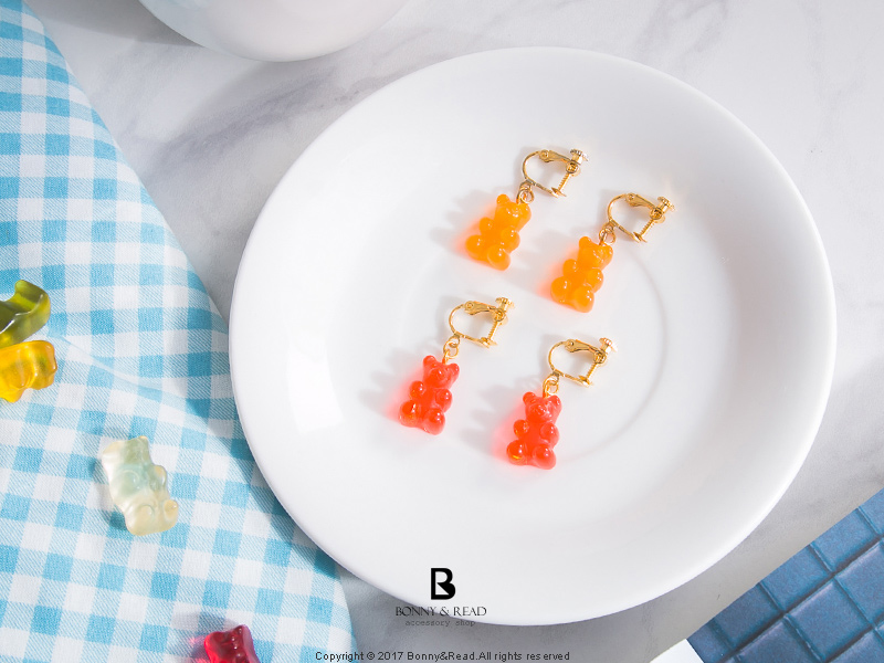 ◎小熊軟糖耳環 針/夾 - 黃色 ◎韓國燒酒耳環 針/夾