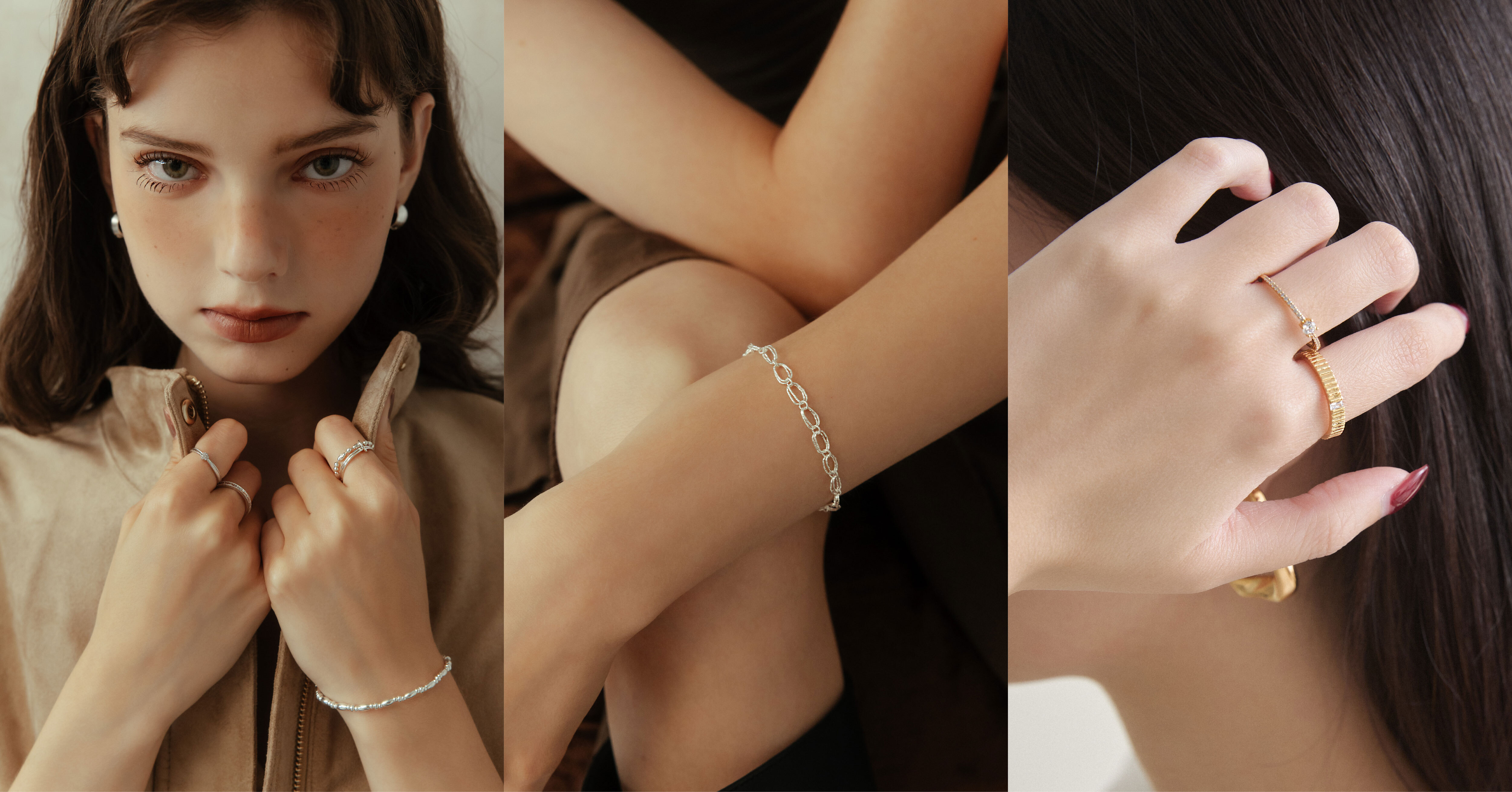 份量感戒指與細圈戒的疊搭,