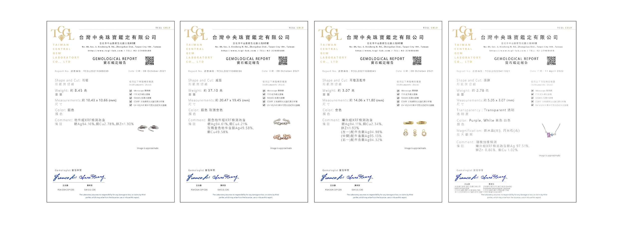 可以將飾品拿至金屬鑑定所檢驗,
