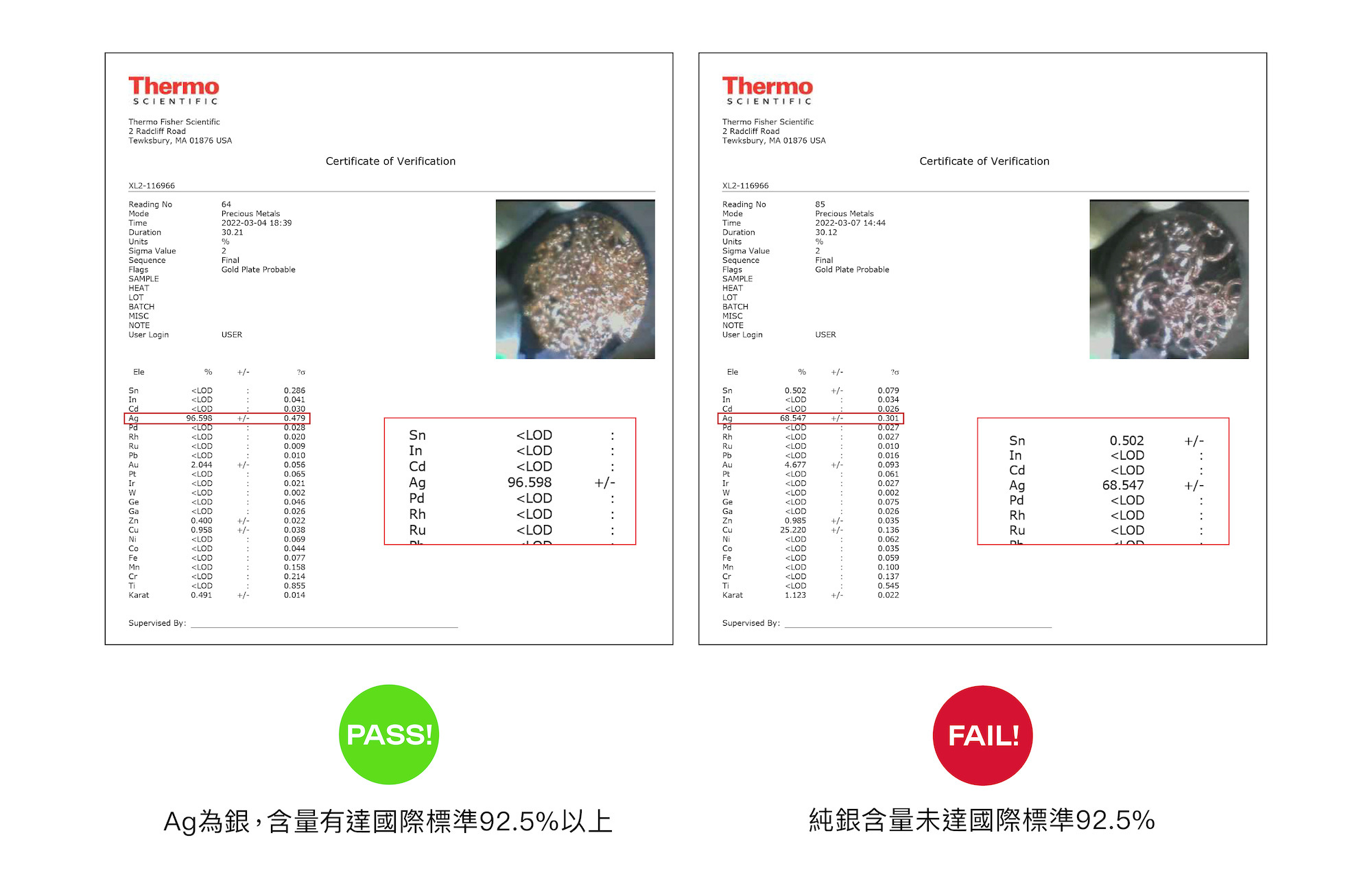 確保商品的金屬含量正確。