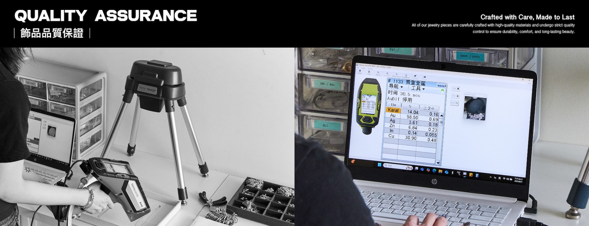 即可測出飾品內含量的金屬