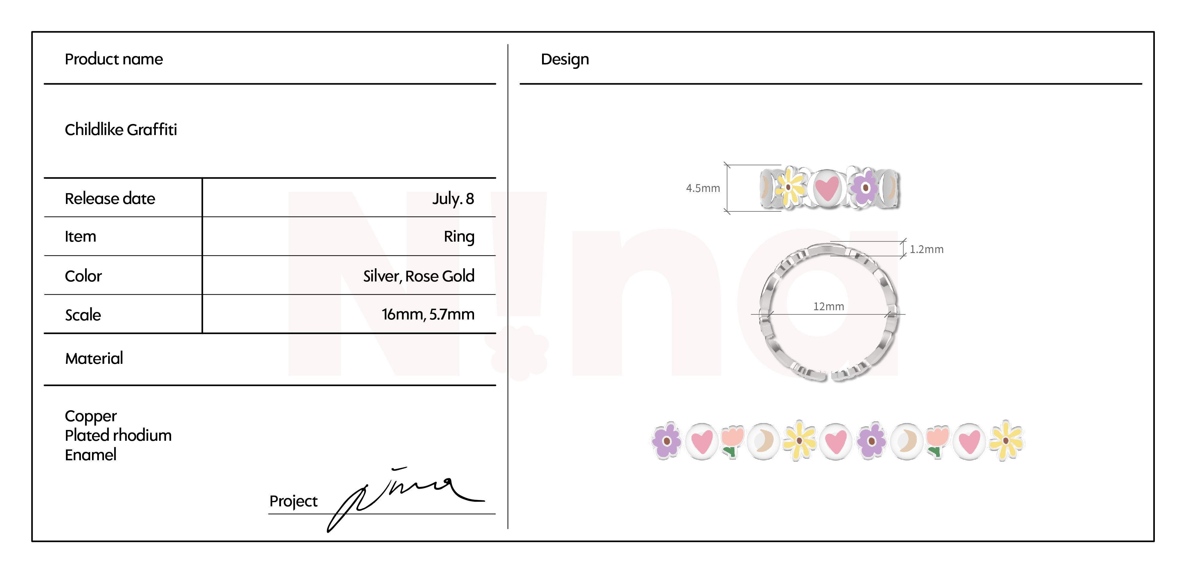 戒指上運用了Nina手繪小塗鴉,