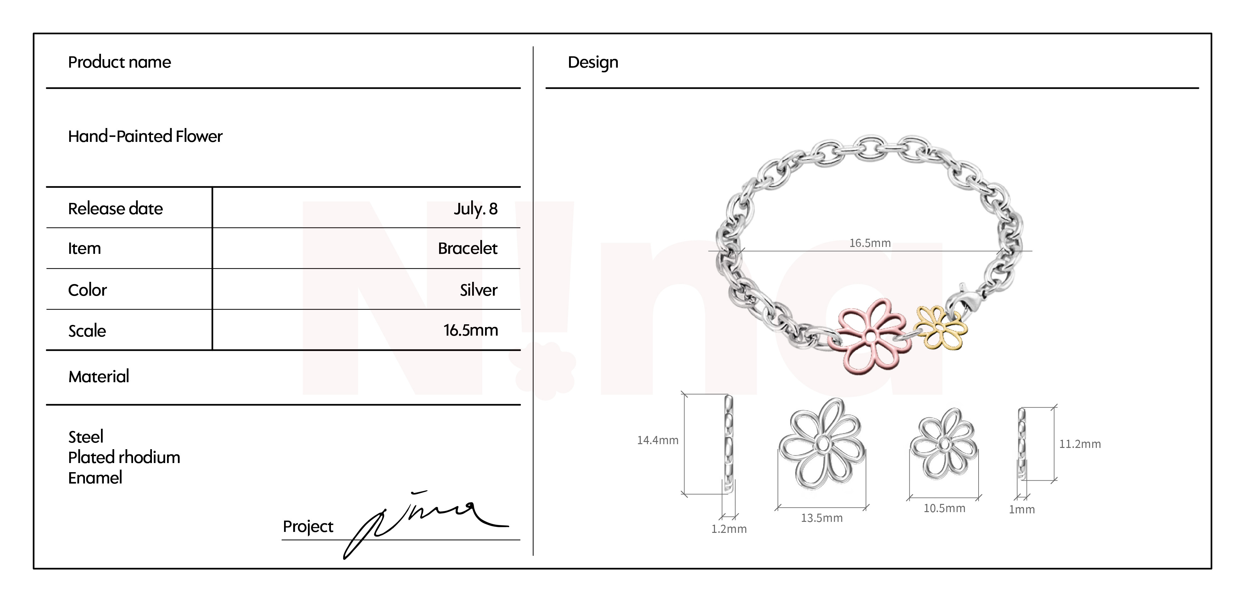 Nina:「手鍊上有黃色、粉色的小花,