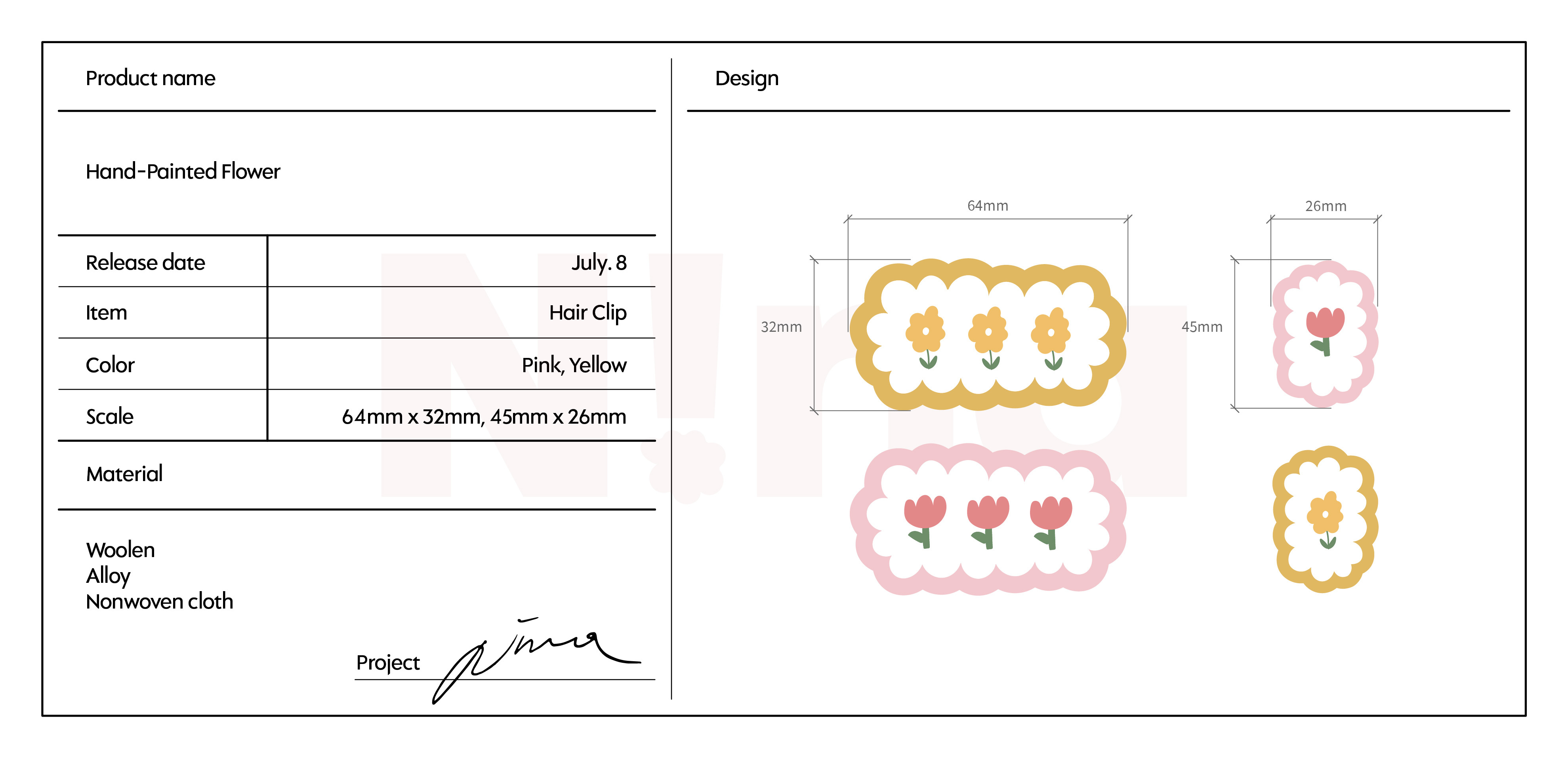 以Nina手繪花朵以鏤空造型呈現,