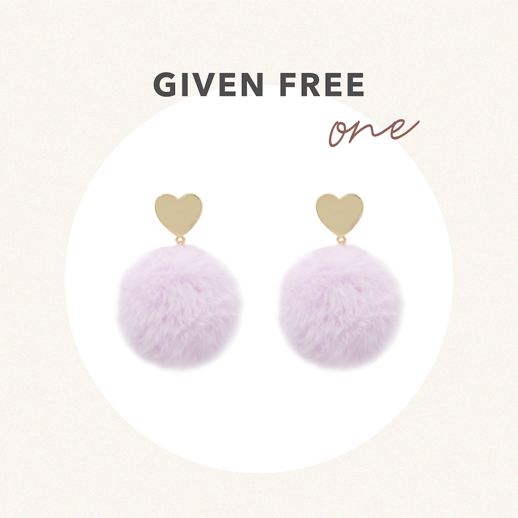 [正韓] 毛球眷戀夾式耳環 / 紫
