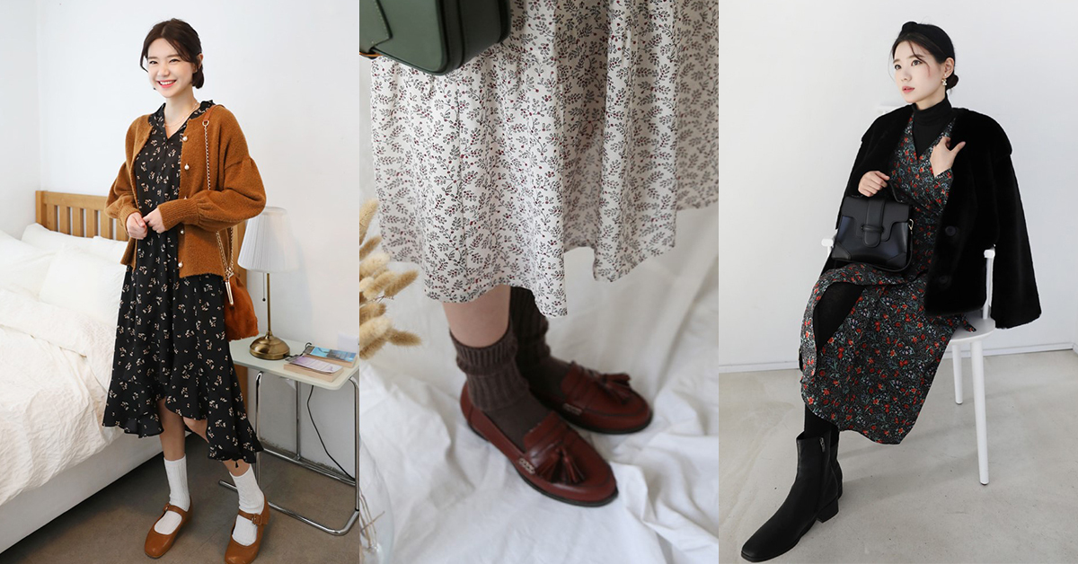 滿版的小碎花洋裝,簡單穿搭就很仙氣
