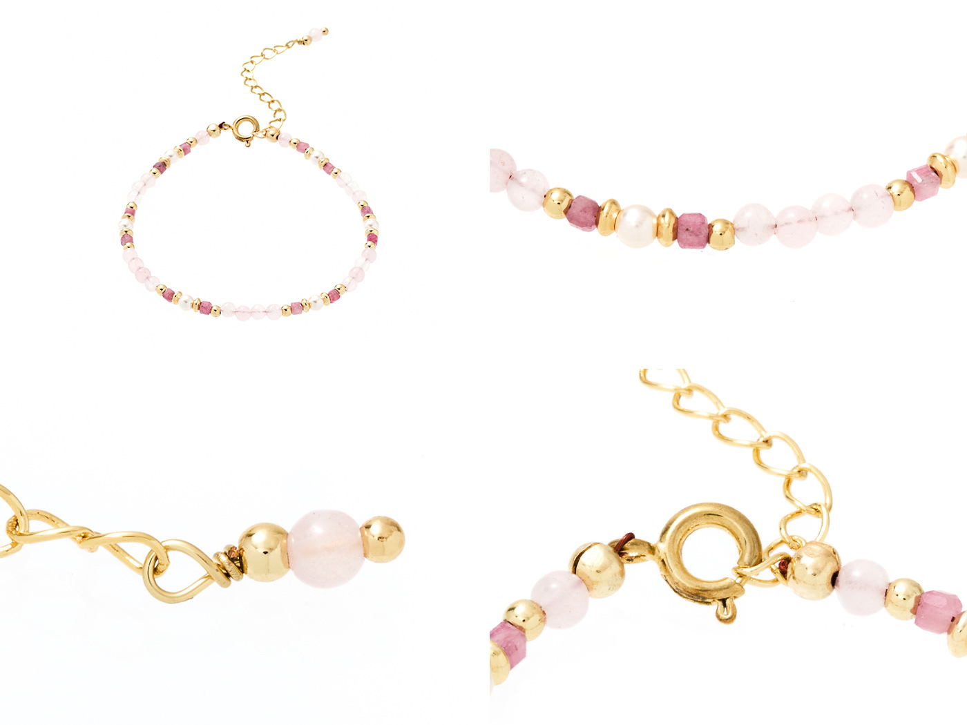 ● 商品材質:銅 (保色電鍍)  / 粉水晶 / 粉碧璽 / 貝珠