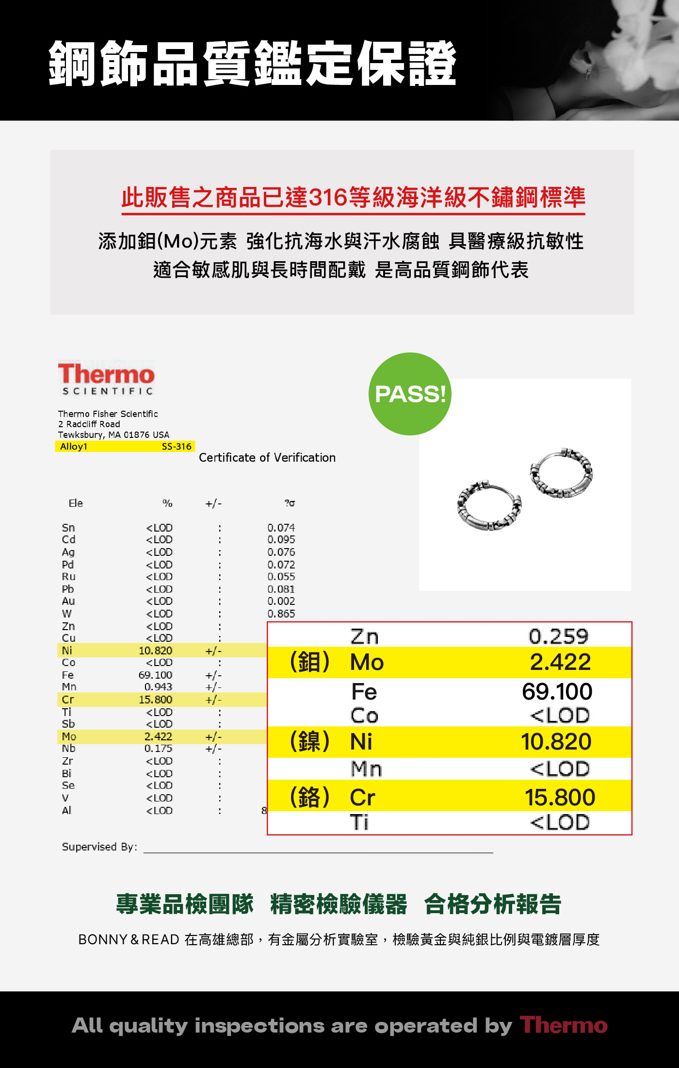 ● 耳針材質:316 不鏽鋼