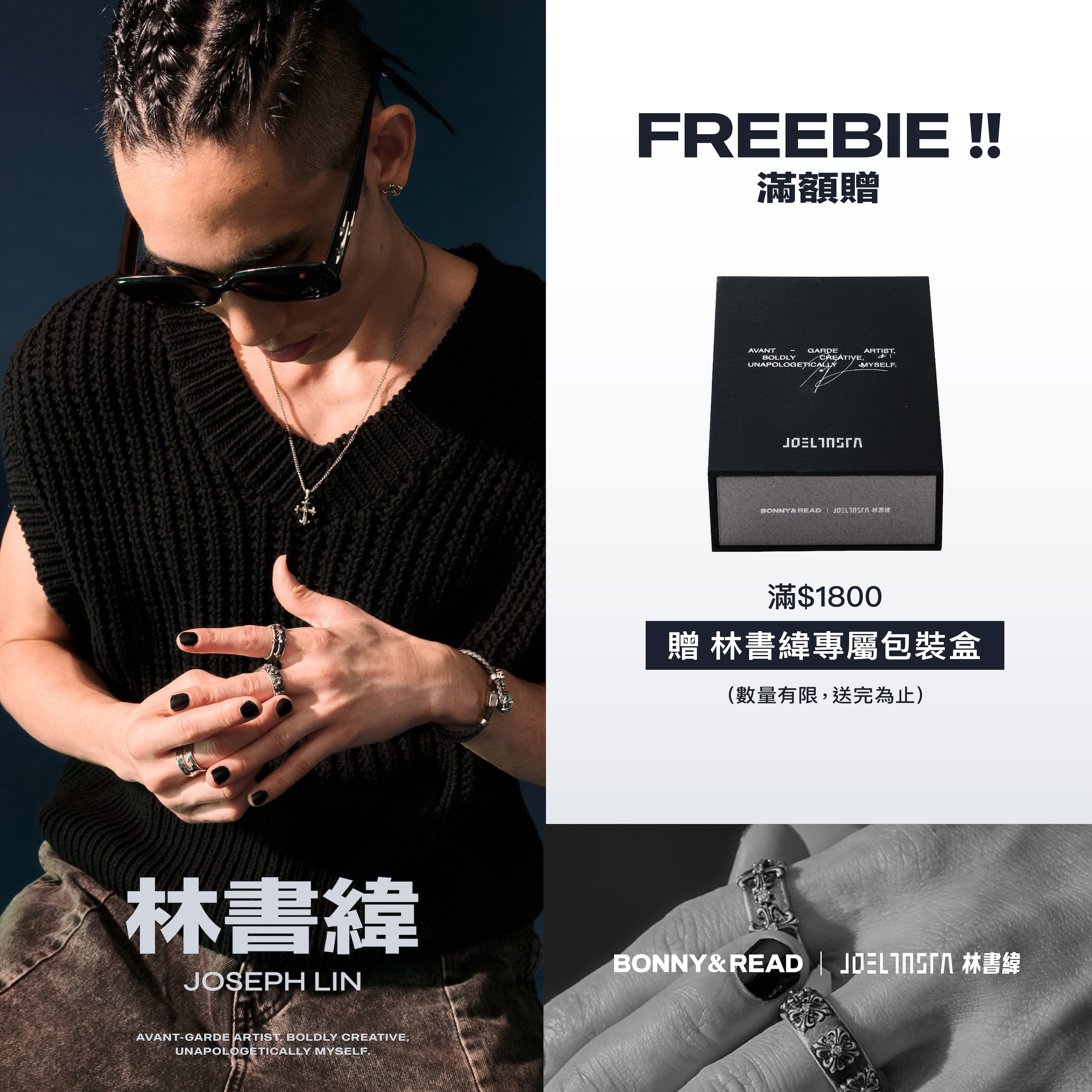 ● 林書緯聯名商品系列,消費滿 $1800 贈『林書緯專屬包裝盒』(數量有限,送完為止)