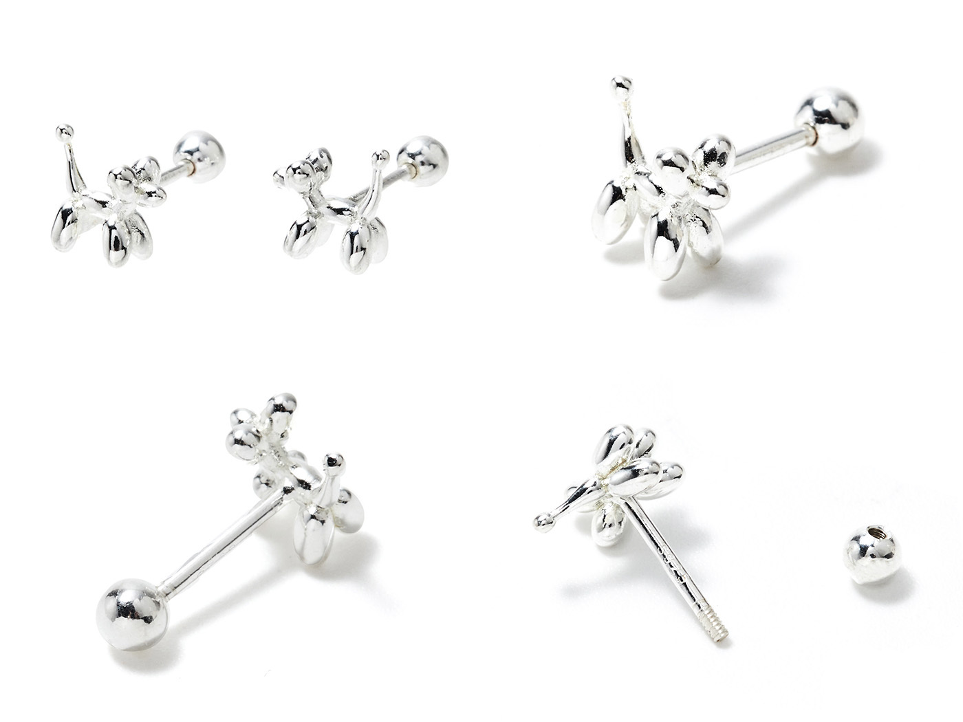 [純銀] 氣球狗轉珠耳環 / Balloon Dog Earring