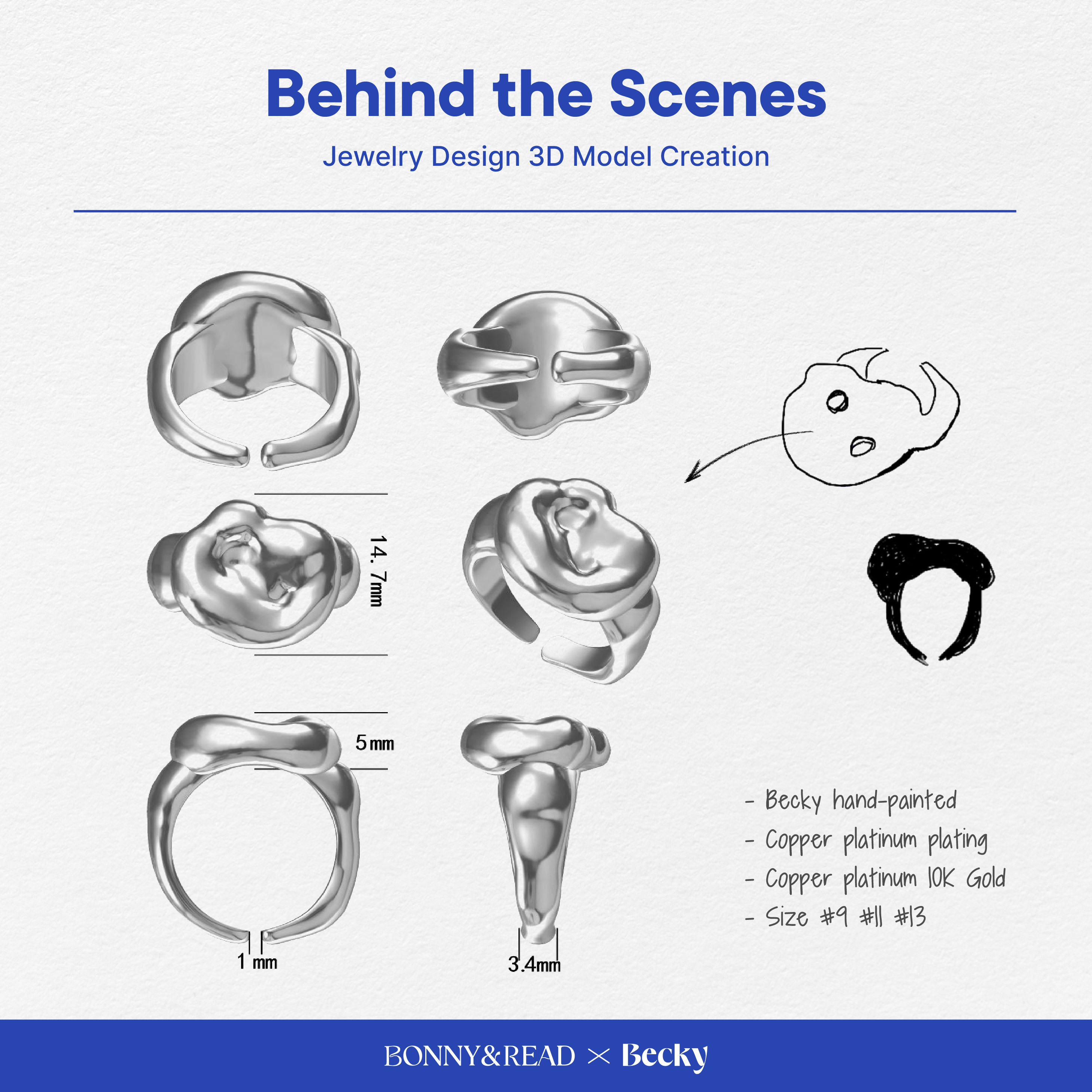 [鍍10K金] Becky手繪造型戒指 / 2色 / 3 size / Becky Hand-Painted Ring