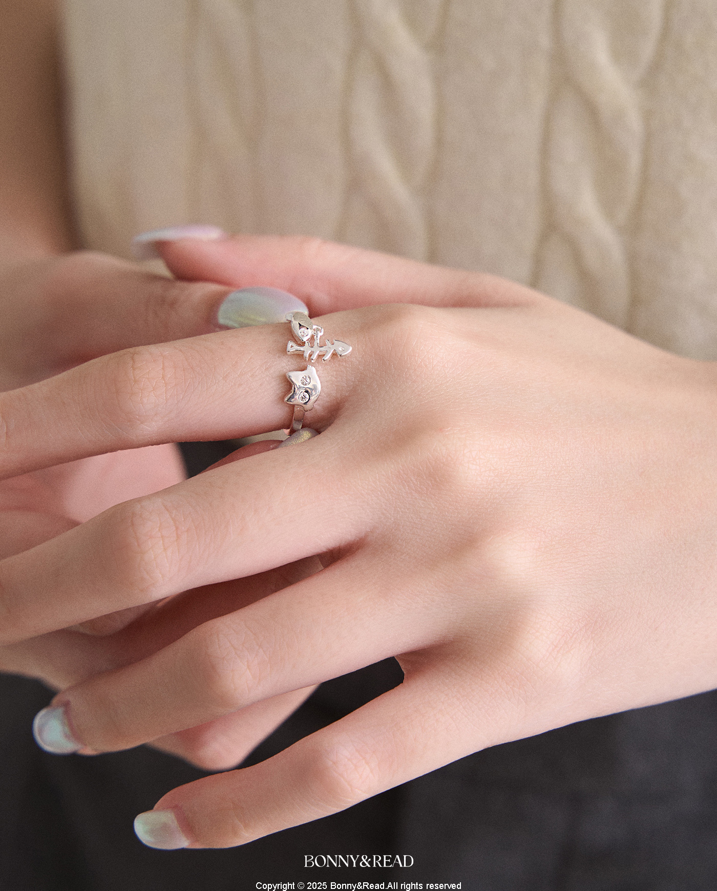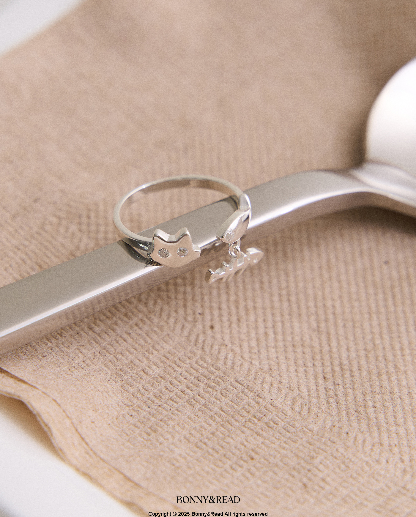 [純銀] 貓咪愛吃魚戒指 / Cat And Fish Ring