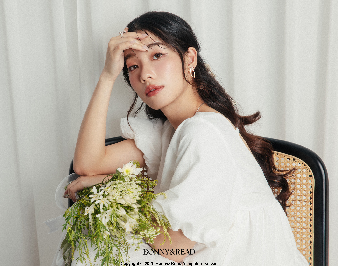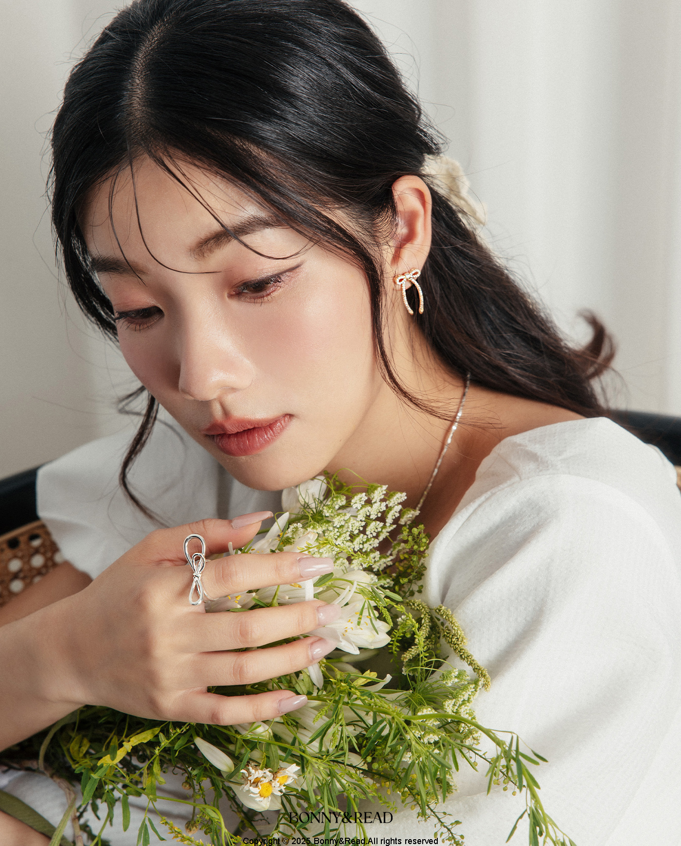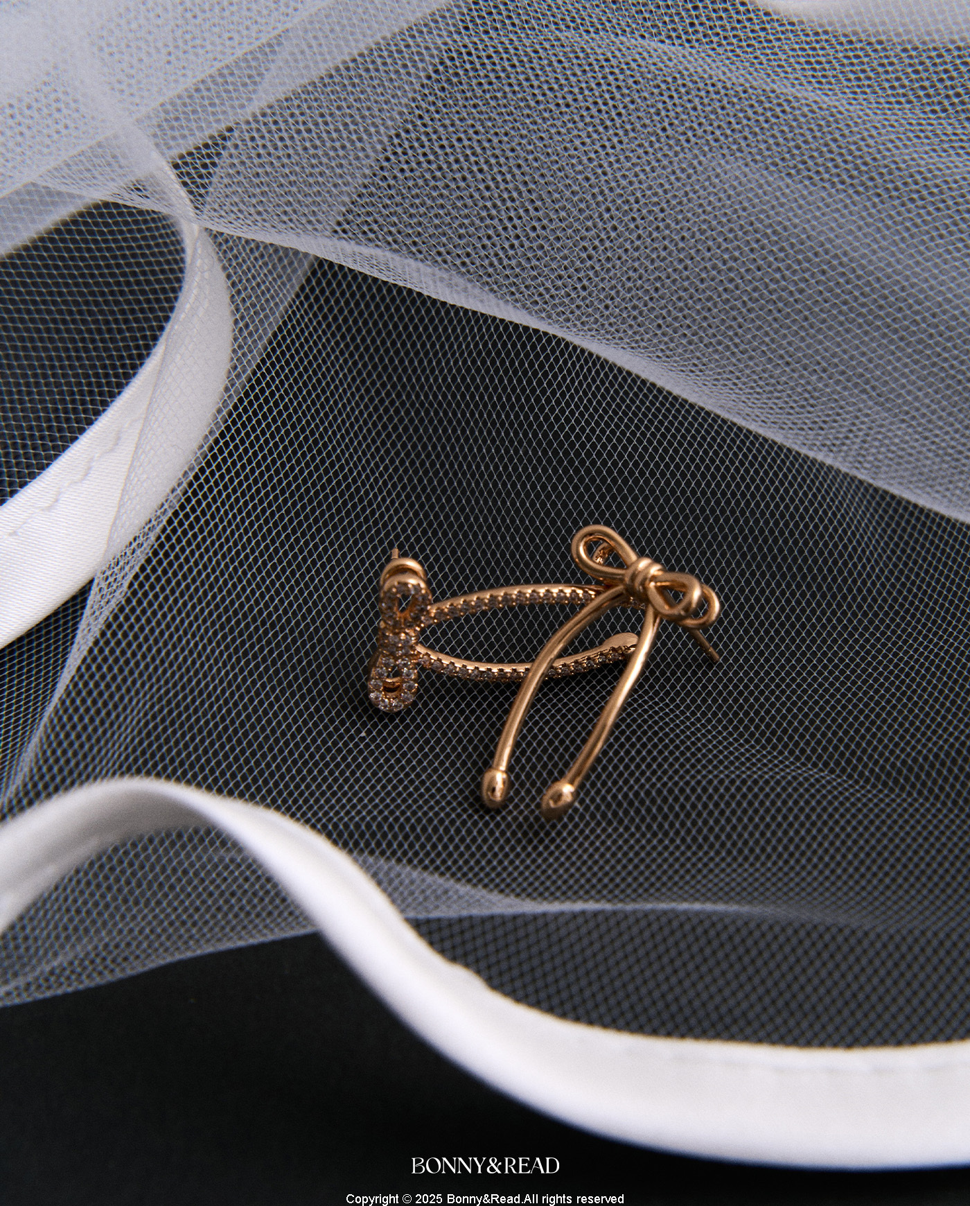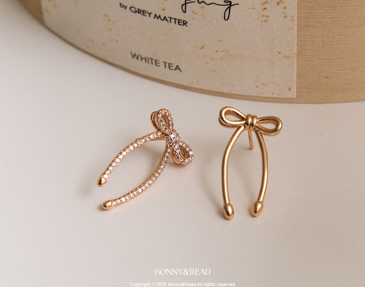 [銀針] 香檳蝴蝶結耳環 / Champagne Bow Earring
