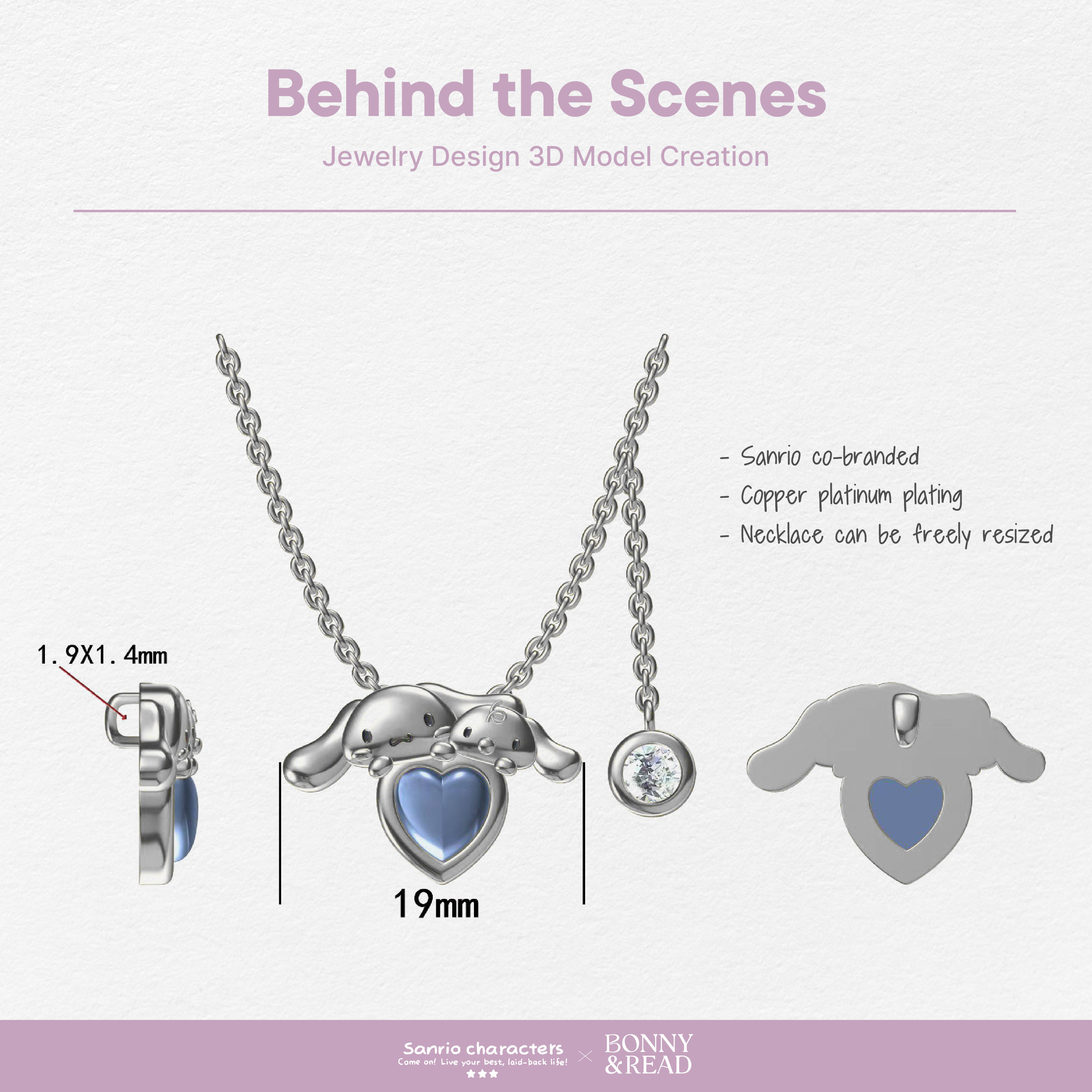 [預購] [三麗鷗聯名/鋼飾] 大耳狗之心項鍊 / Cinnamoroll Heart Necklace