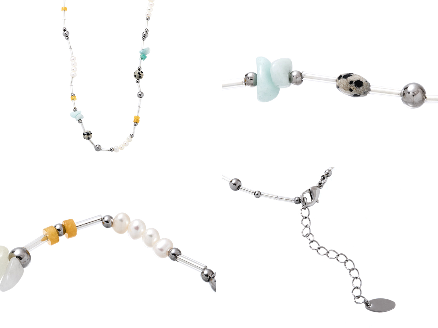 ● 商品材質:玻璃水晶珠 / 斑點石 / 淡水珍珠 / 黃東陵 / 天河石 / 銅 (保色電鍍)