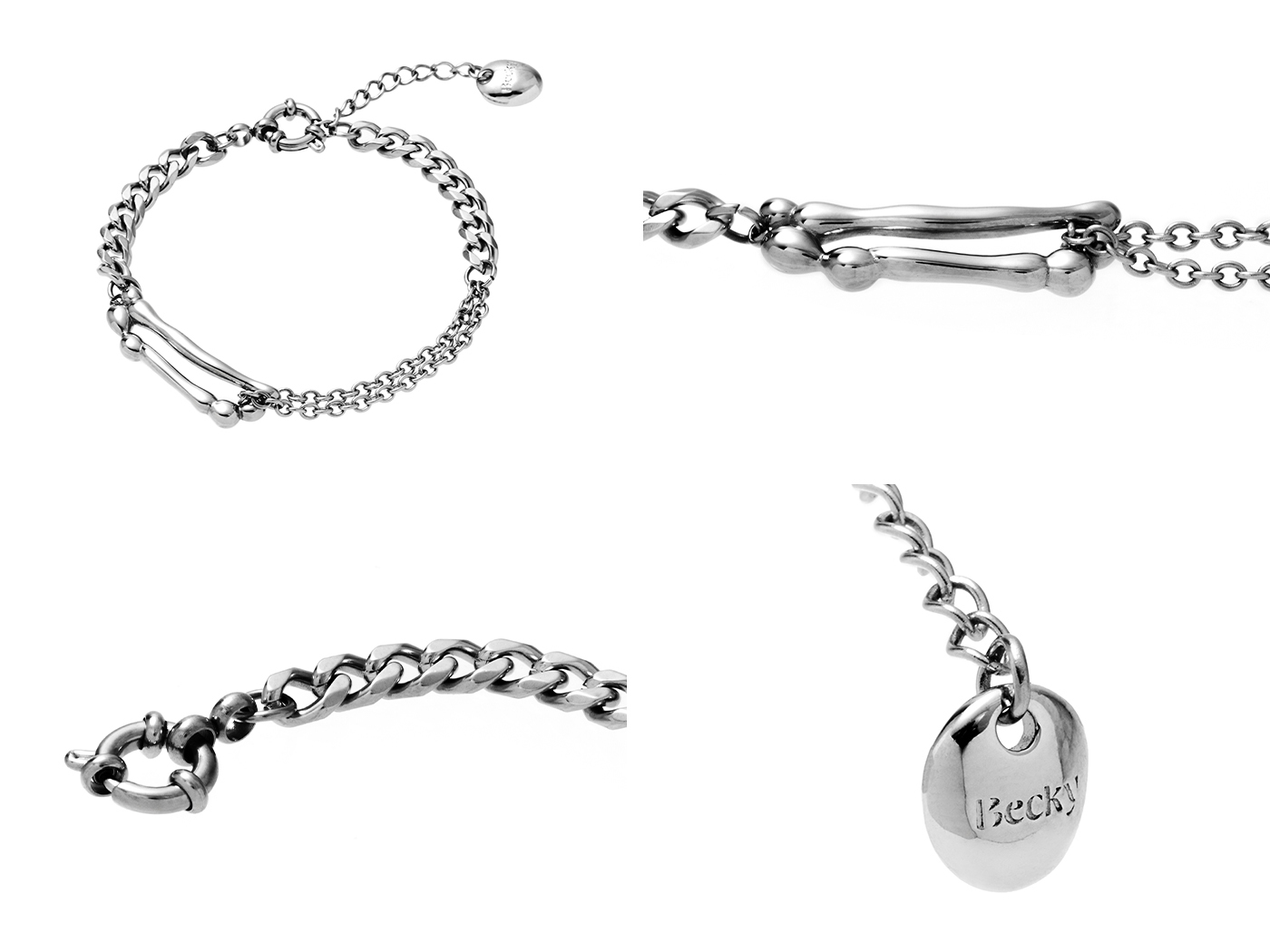 ● 商品材質:鏈條-203 不鏽鋼 / 造型配件-銅鍍白金 / 吊牌-銅鍍白金