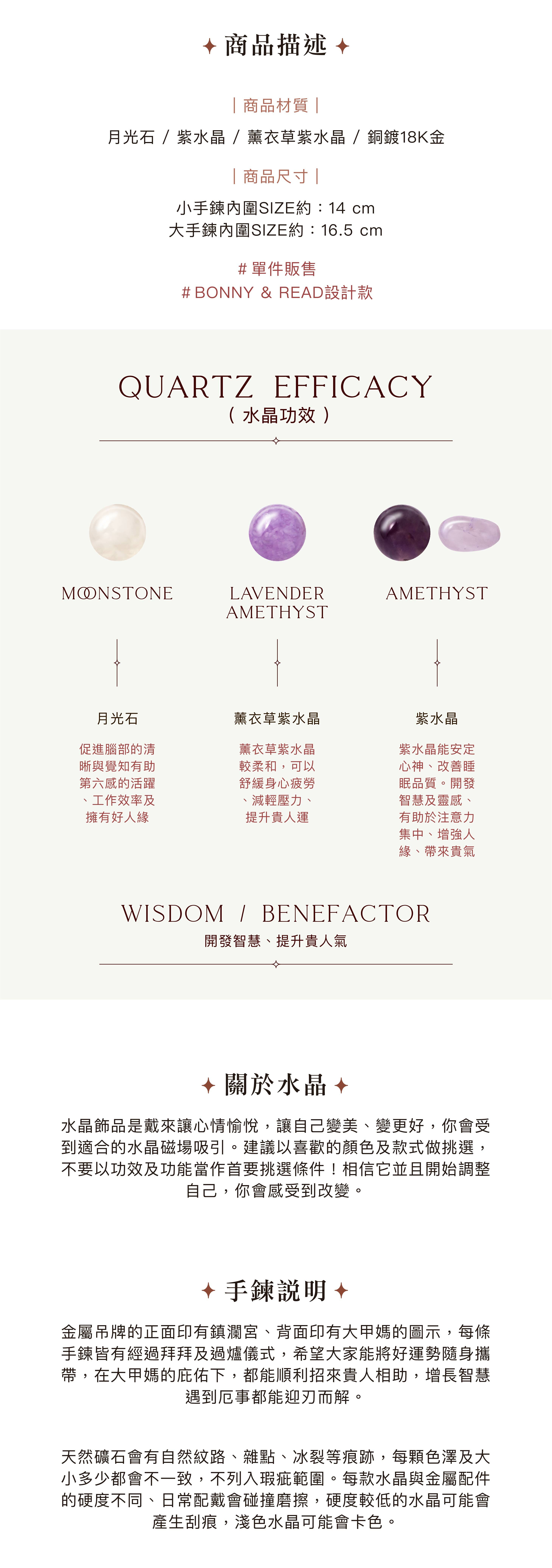 ● 商品材質:銅鍍18K金/紫水晶/月光石/薰衣草紫水晶