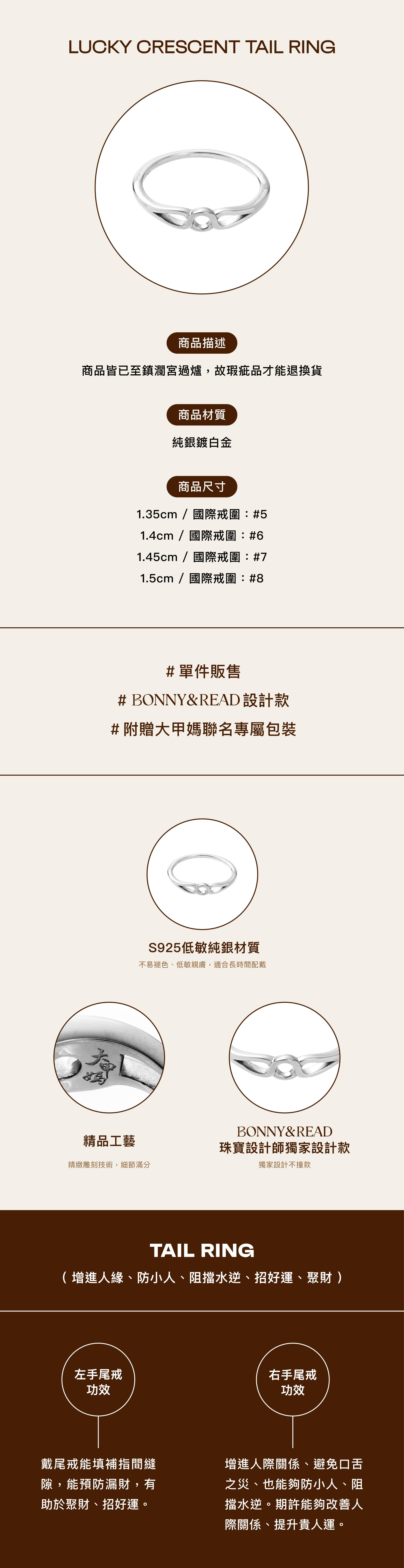 [純銀] 幸運之弧尾戒 / 4 size / Lucky Crescent Tail Ring [大甲鎮瀾宮聯名]
