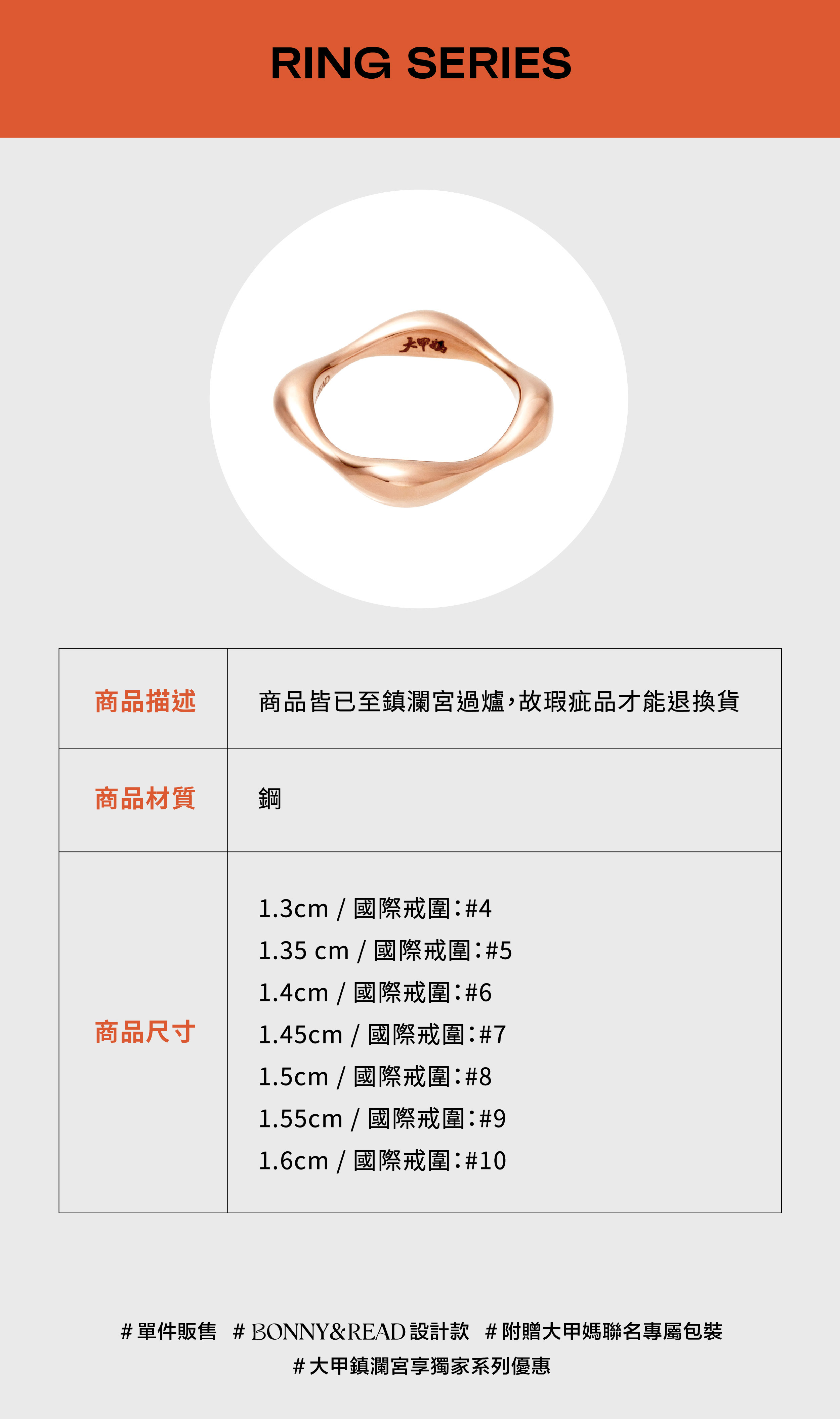 [鋼飾] 開運尾戒 / 玫瑰金 / 7 size / Lucky Ring [大甲鎮瀾宮聯名]