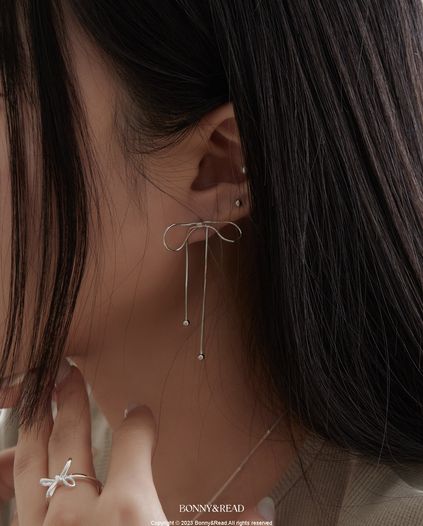 [純銀] 跳舞的蝴蝶結耳環 / 2色 / Dancing Bow Earring