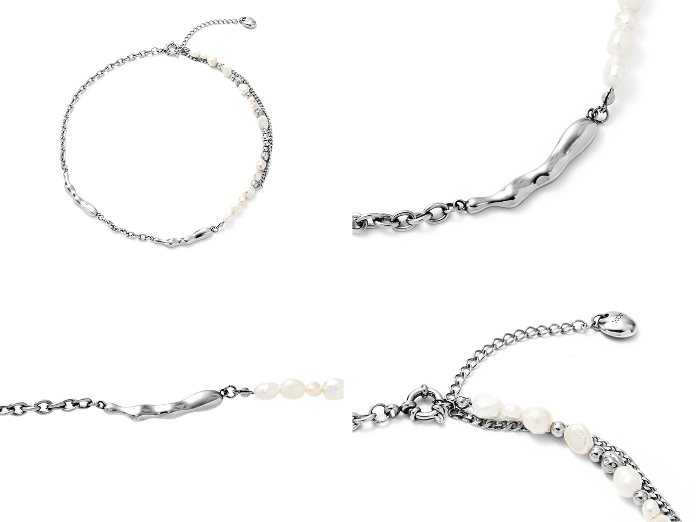 ● 商品材質:一般鋼 / 尾牌-銅鍍白金 / 淡水珍珠