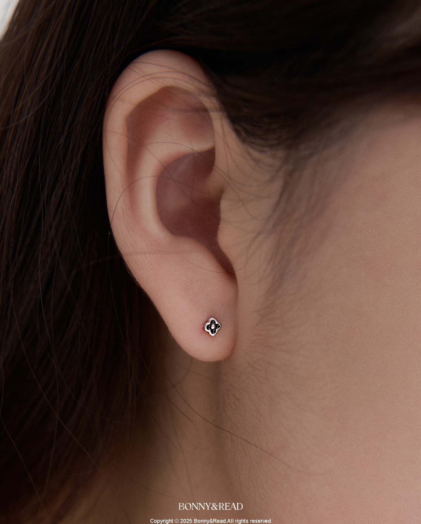 [預購] [純銀] 精緻黑花耳環 / Delicate Flower Earring