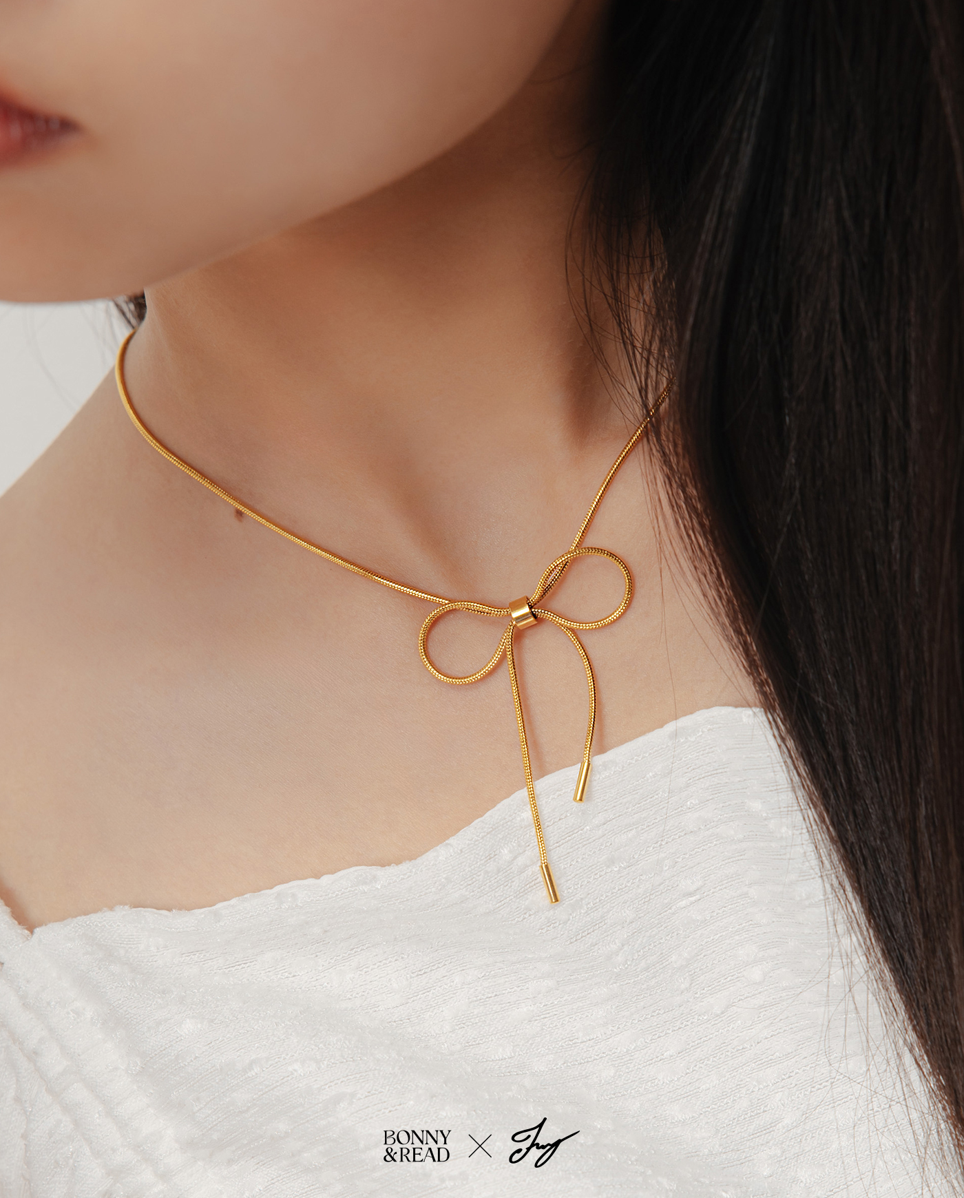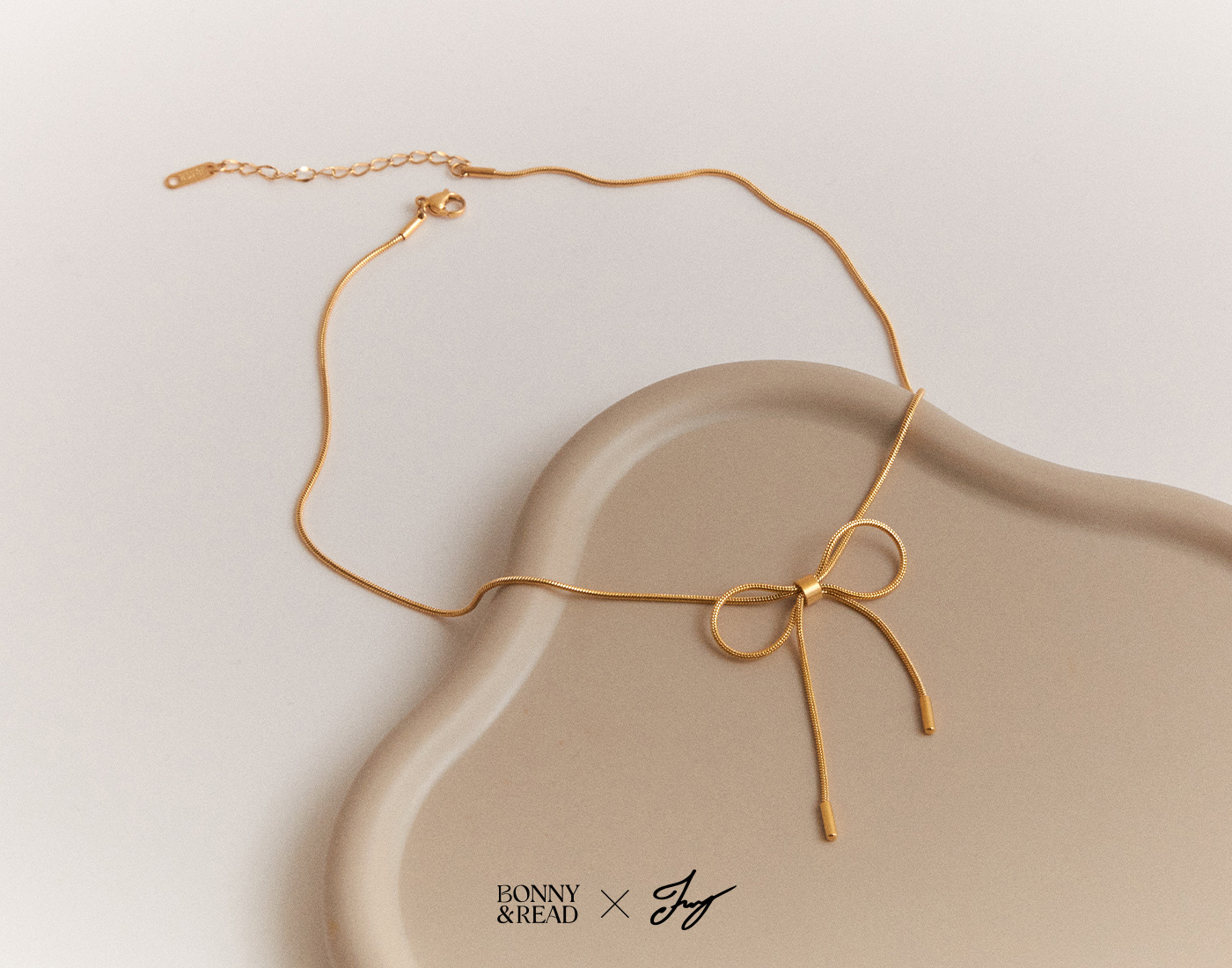 [郁欣聯名款/鍍18K金/鋼飾] 細緻蝴蝶結鎖骨鍊 / Detailed Bow Necklace