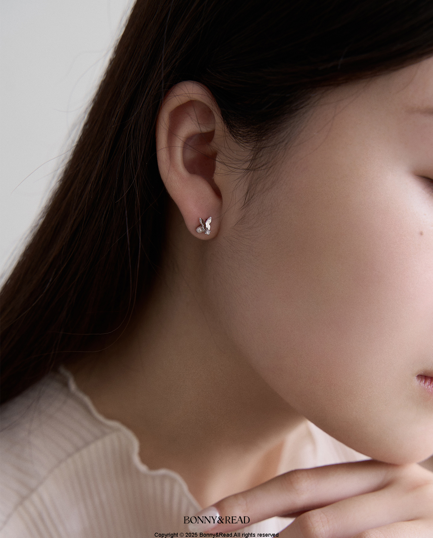 珍珠耳環 蝴蝶耳環