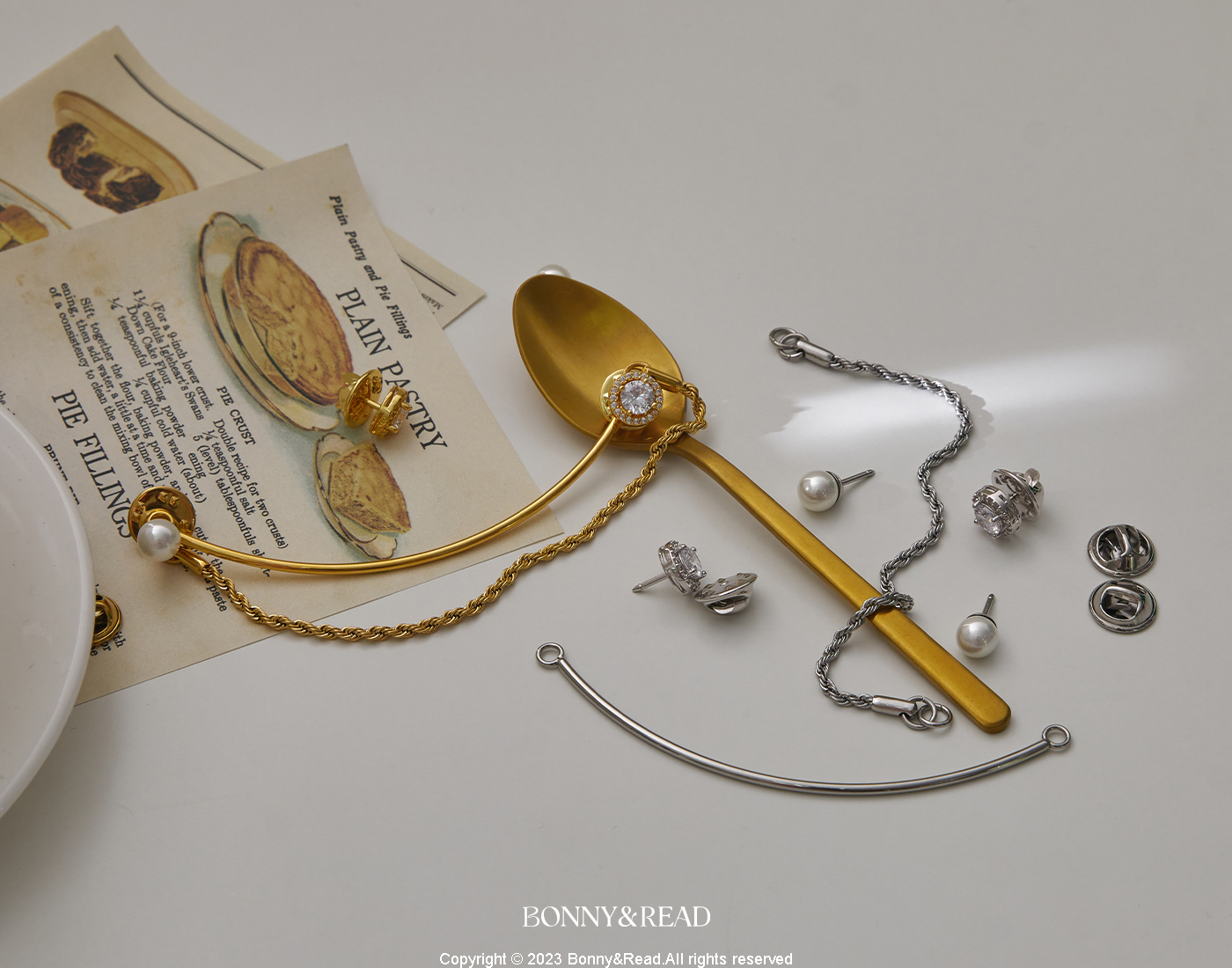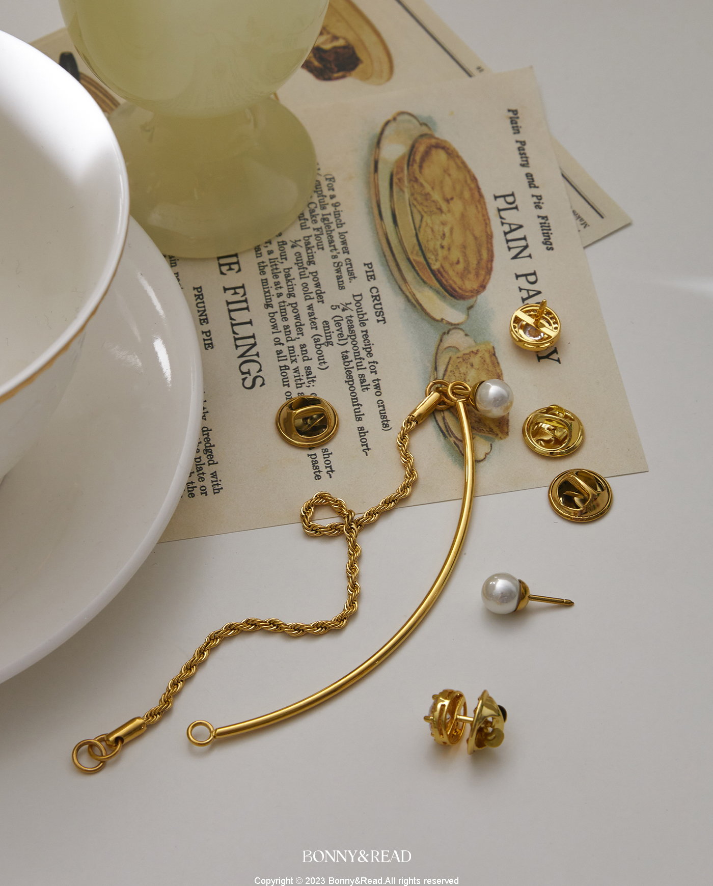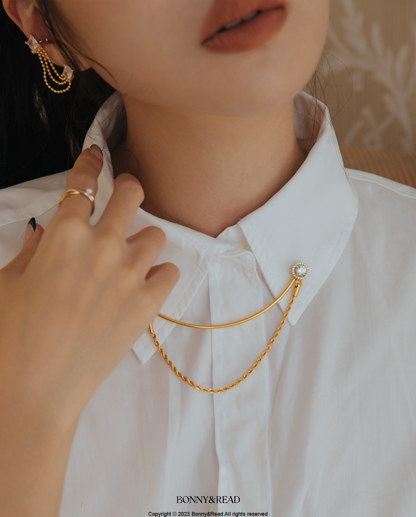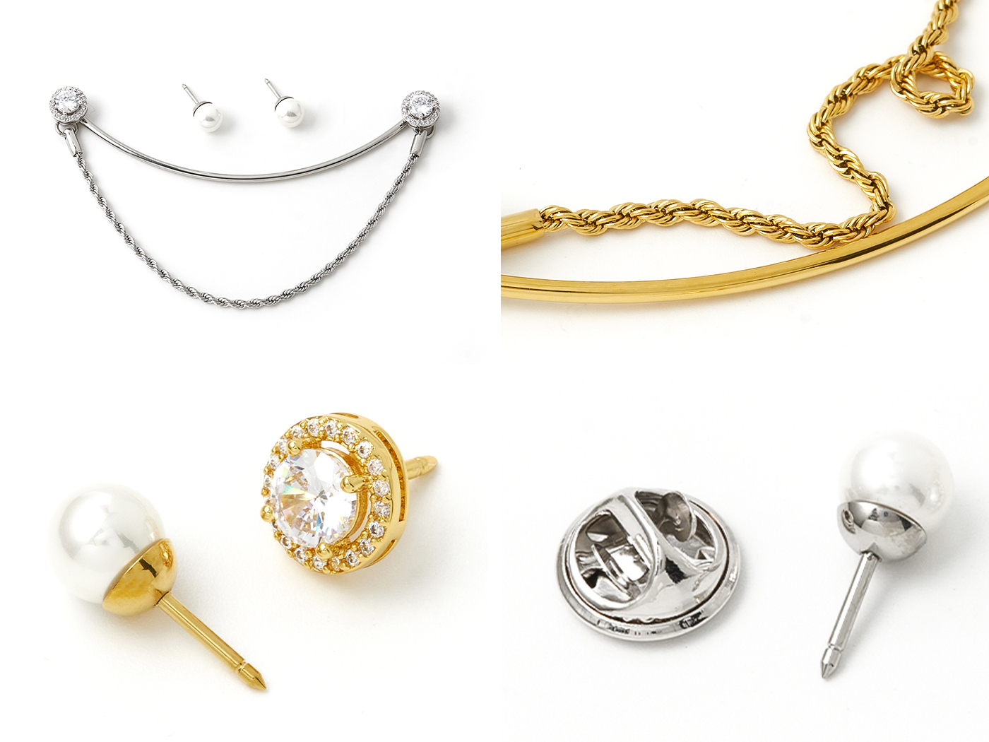 [鈦鋼/5A鋯石] 英式女爵領鍊組 / 2色 / English Duchess Collar Chain Pin Set