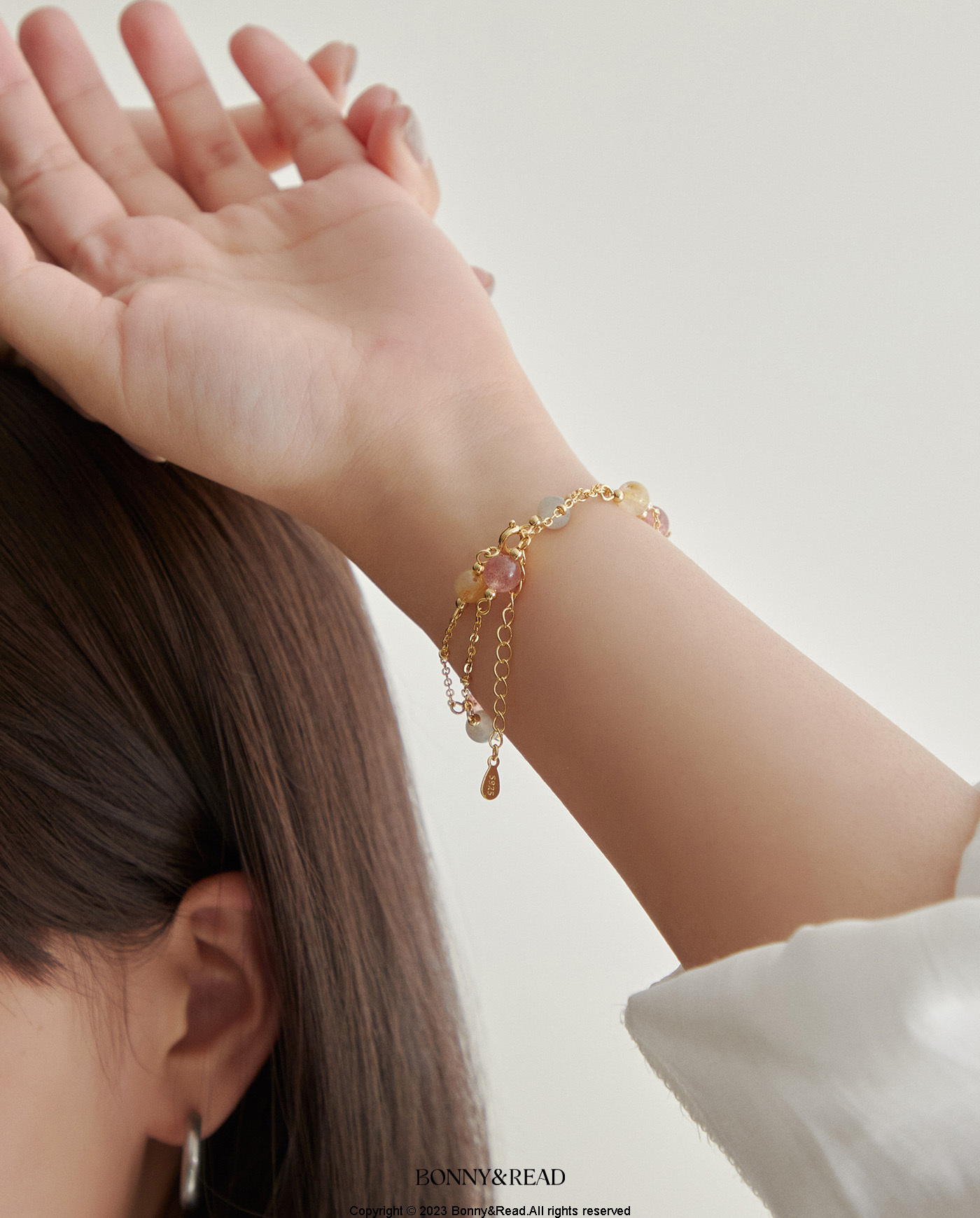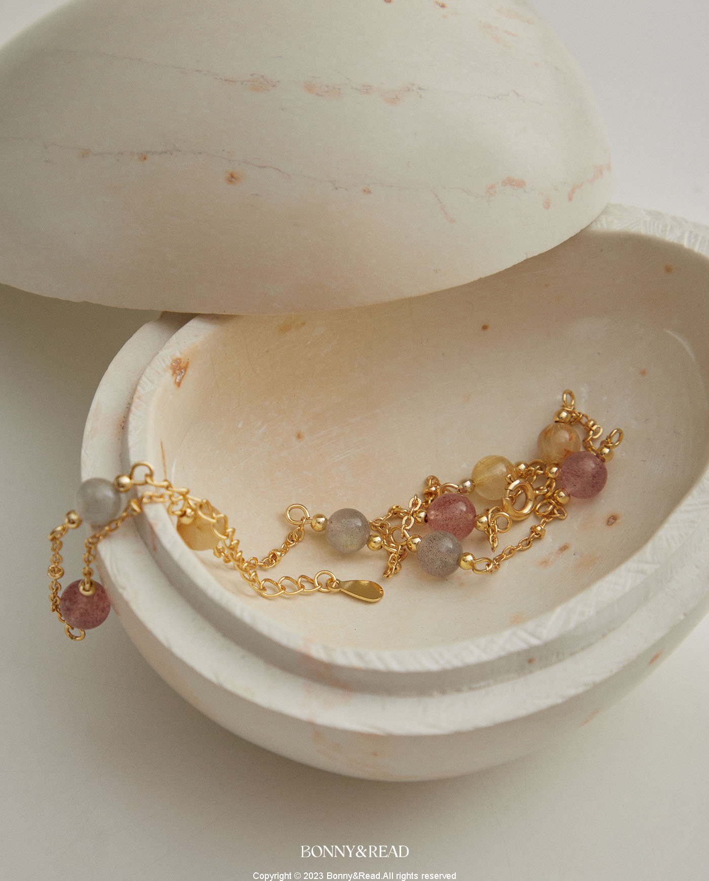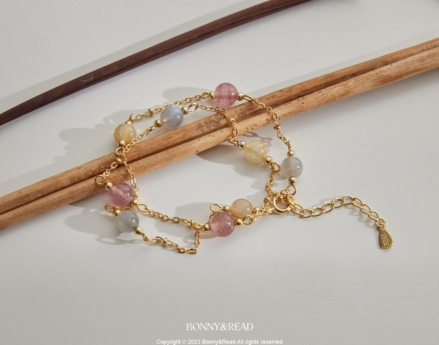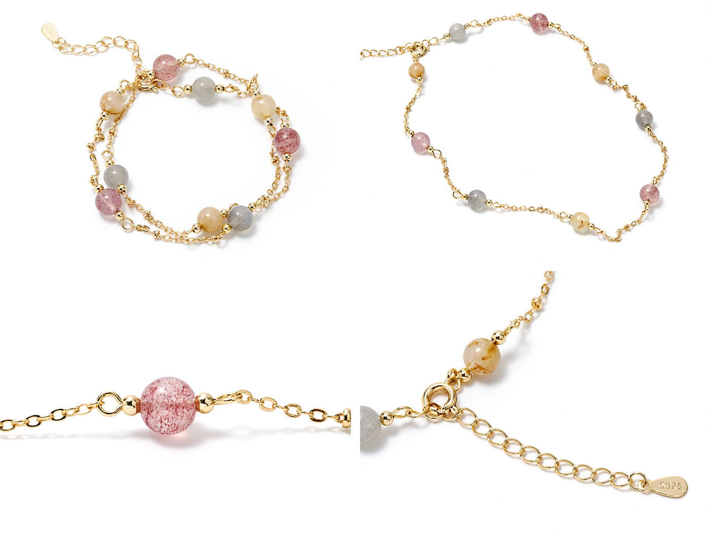 ● 商品材質:銅 / 草莓晶 / 月光石 / 金髮晶