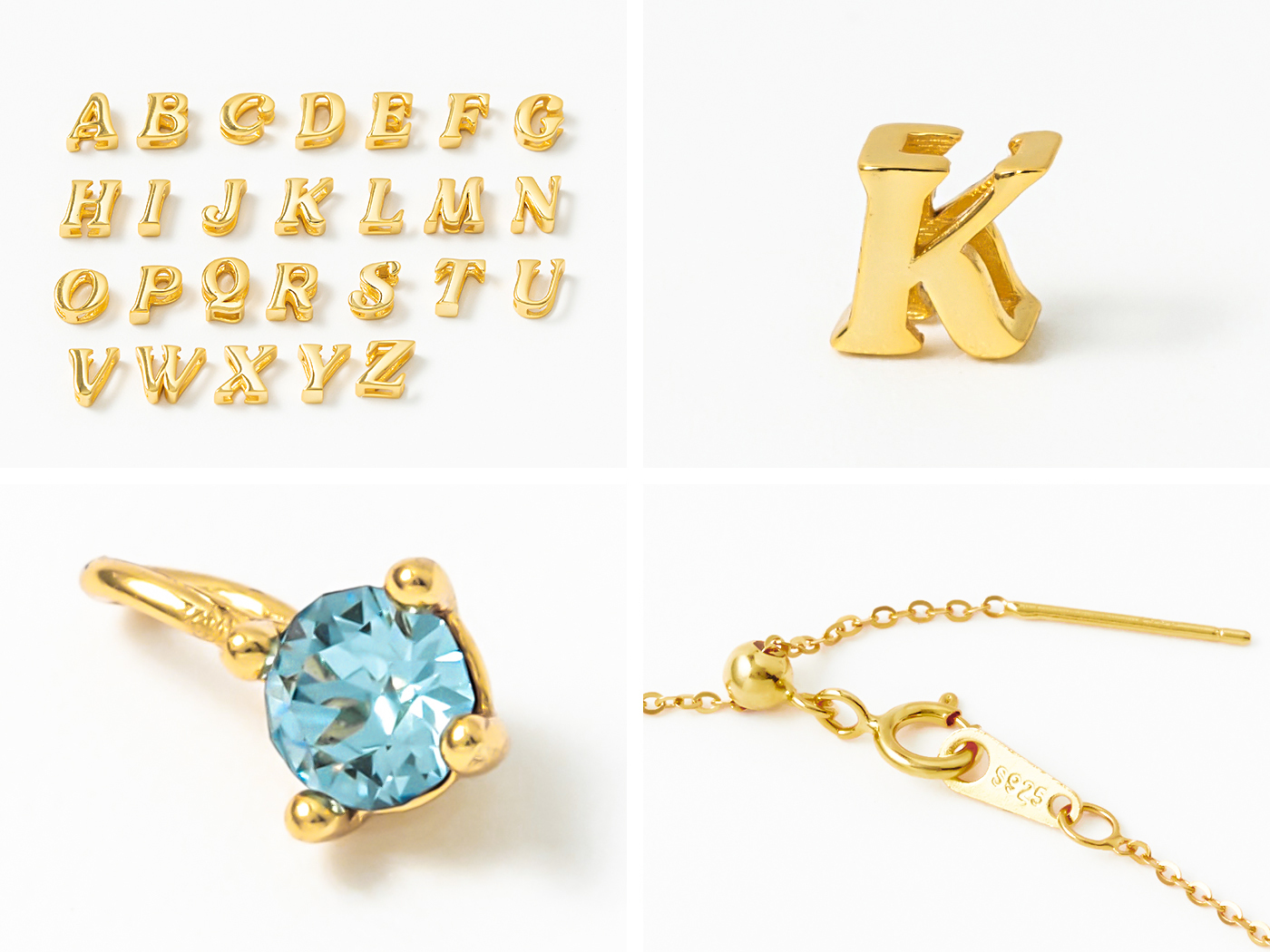 [純銀/可調節設計款/鍍18K金] 金色英文幸運水晶鎖骨鍊 / 26款 / Golden English Alphabet Lucky Necklace