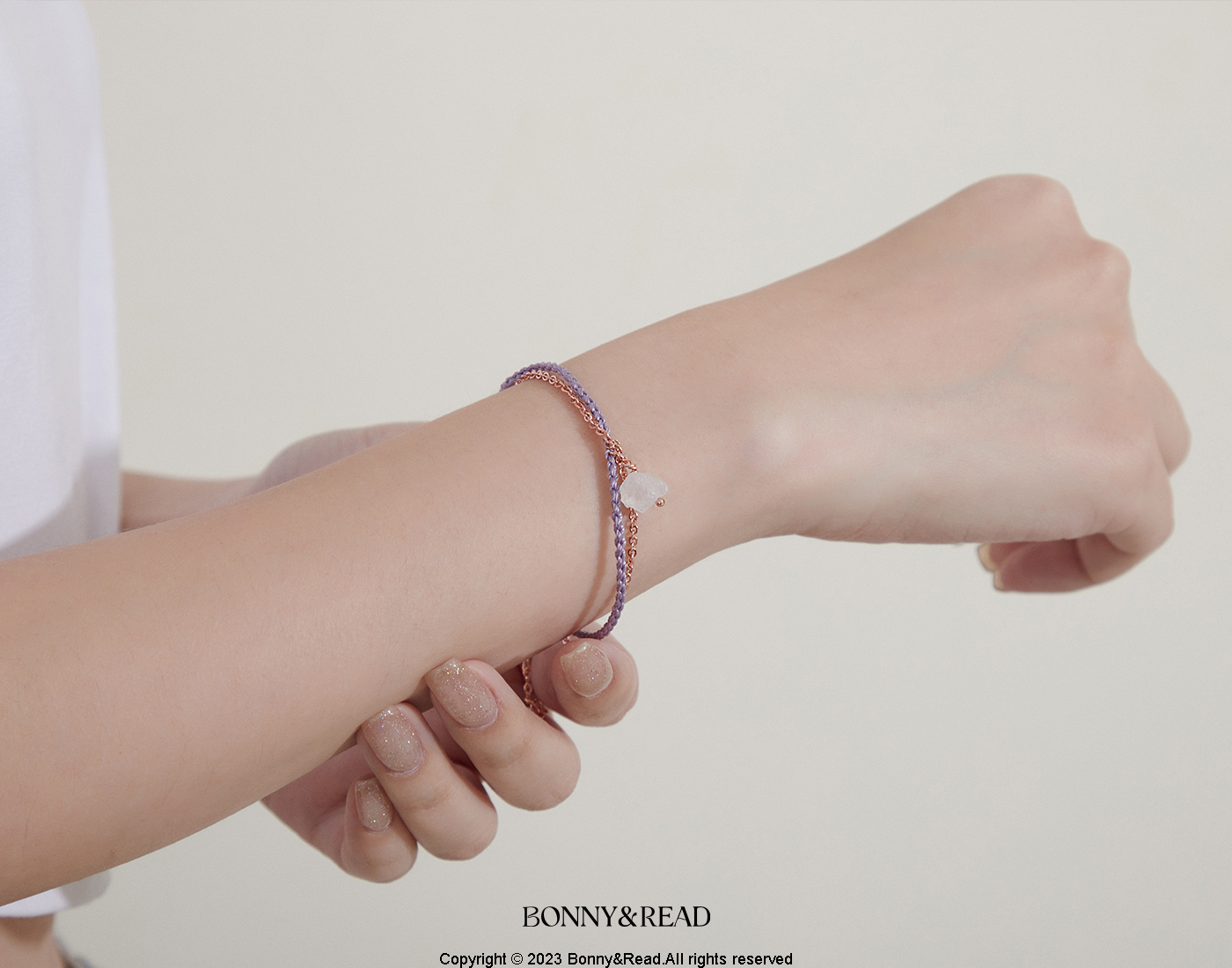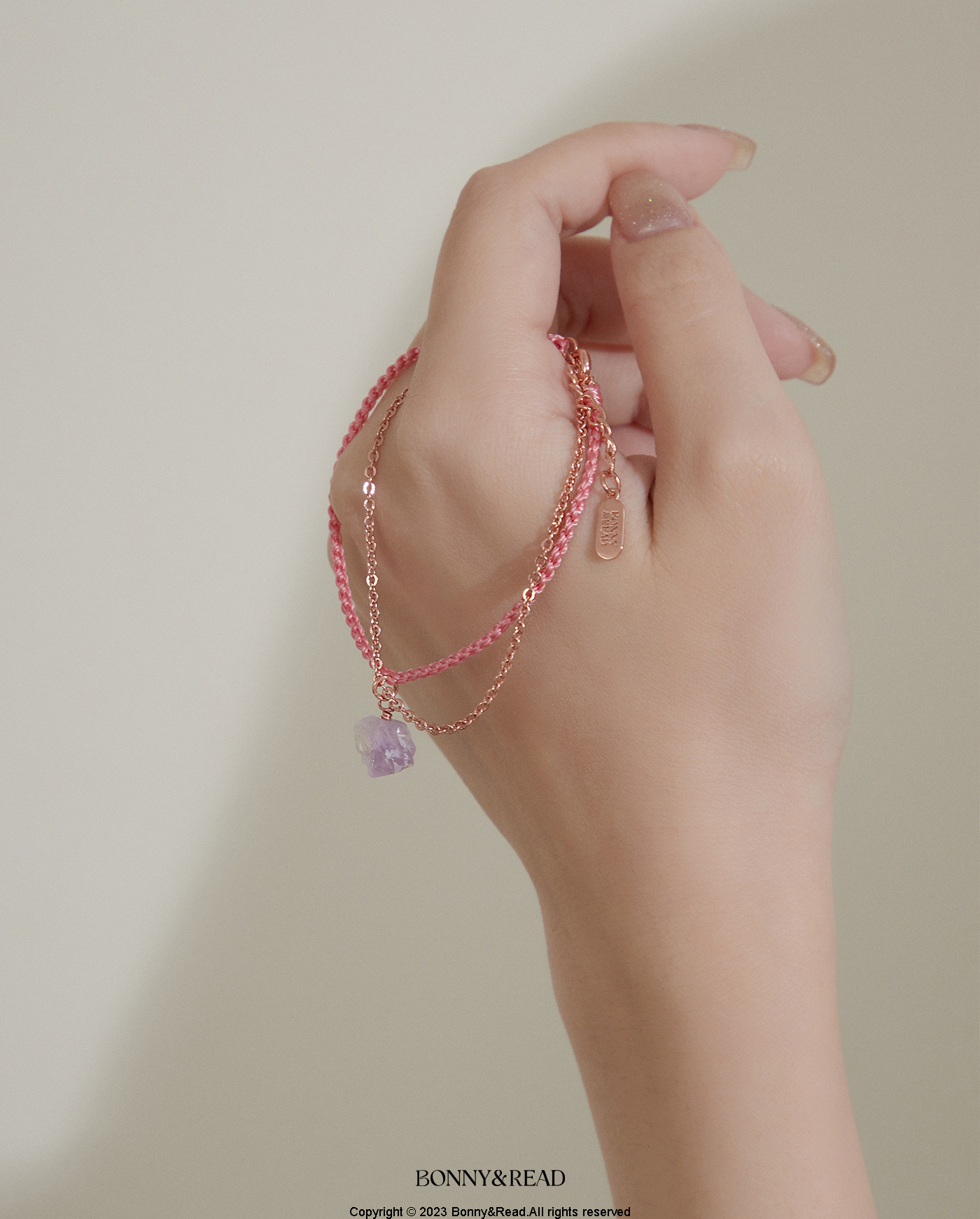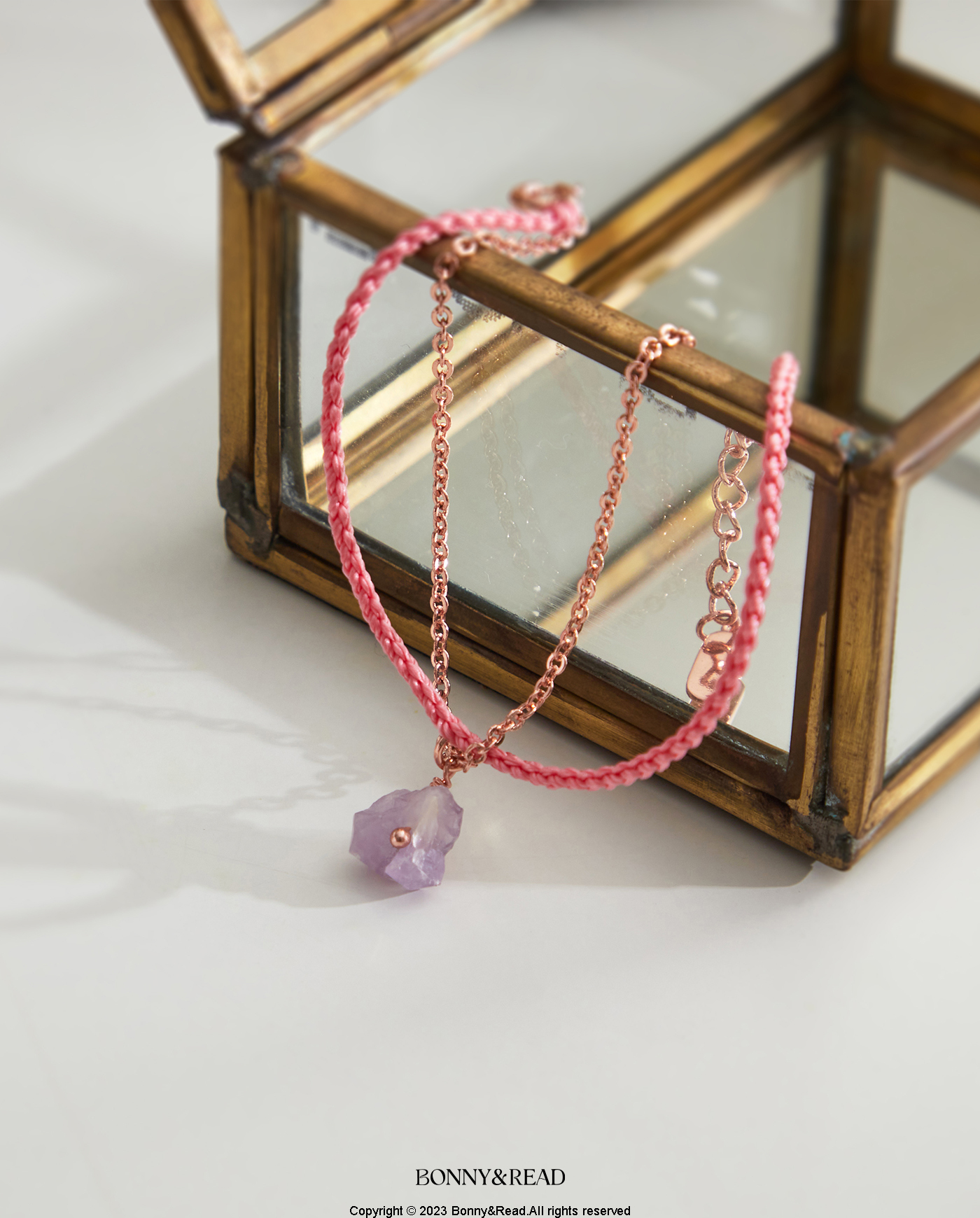 ● 商品材質:銅 (保色電鍍) / 編織繩 / 白水晶 / 粉水晶 / 紫晶花