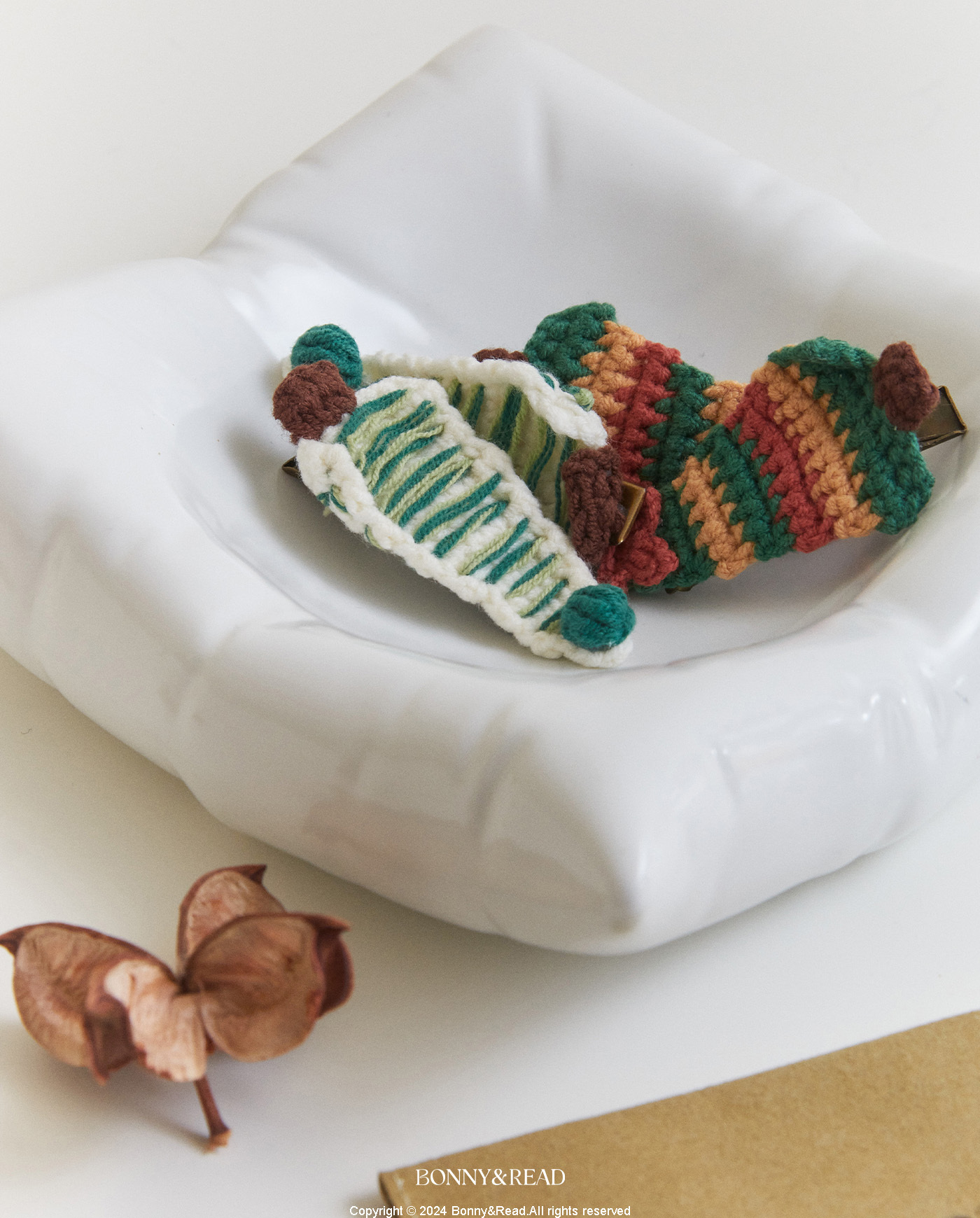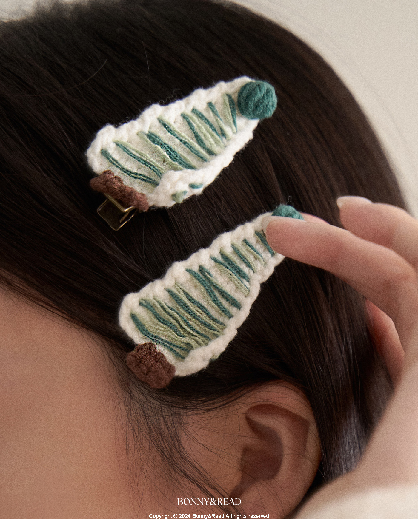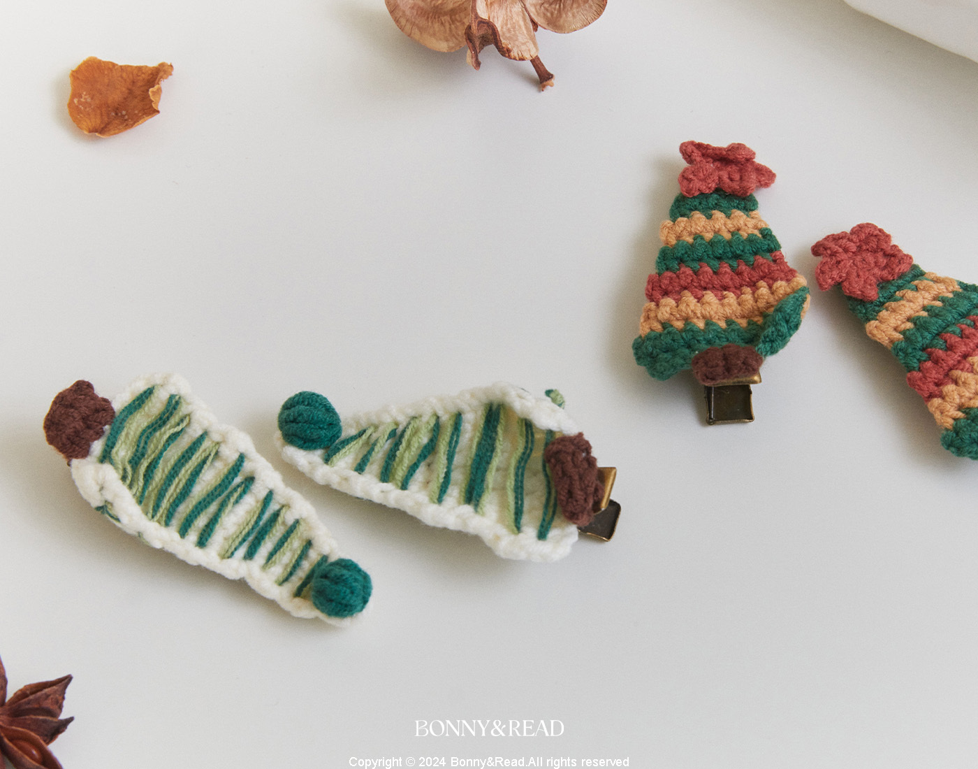 針織聖誕樹髮夾組 / 2色 / Knitted Christmas Tree Hair Clip Set