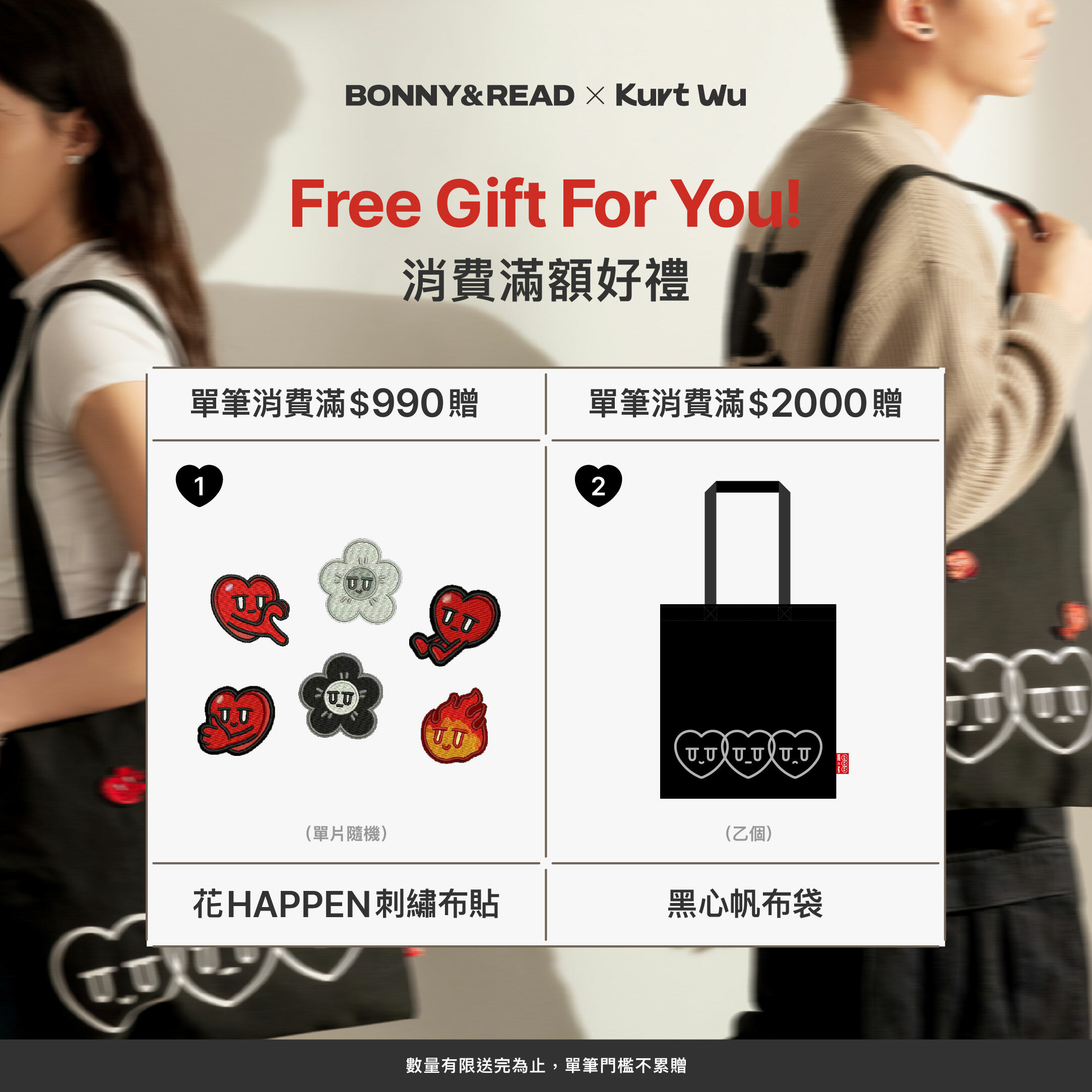 ● Kurt聯名商品系列,消費滿 $2000 贈『黑心帆布袋』乙個 (已贈送完畢)