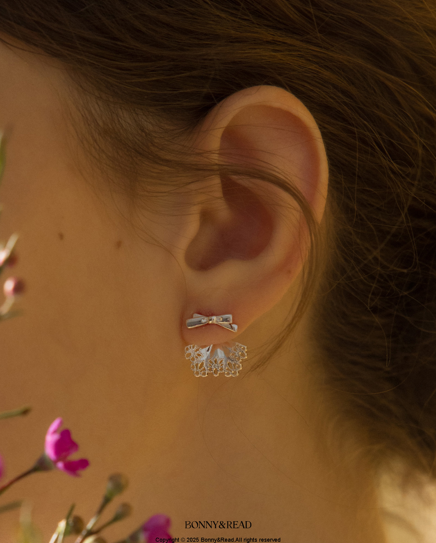 [純銀] 蕾絲裙擺耳環 / Lace Trim Hem Earring
