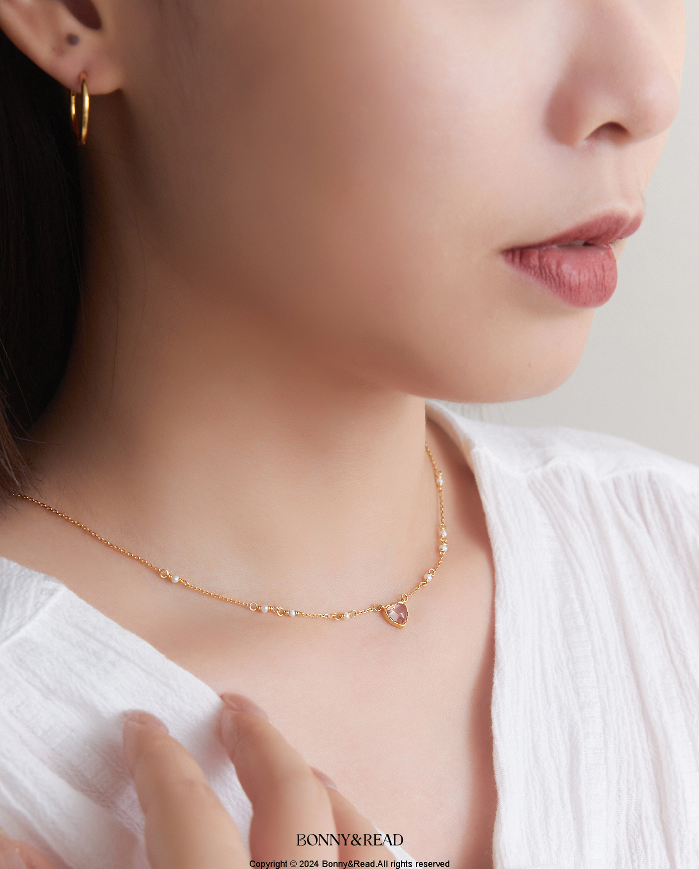 [純銀/粉水晶] 愛情劇本鎖骨鍊 / 2色 / Love Script Necklace