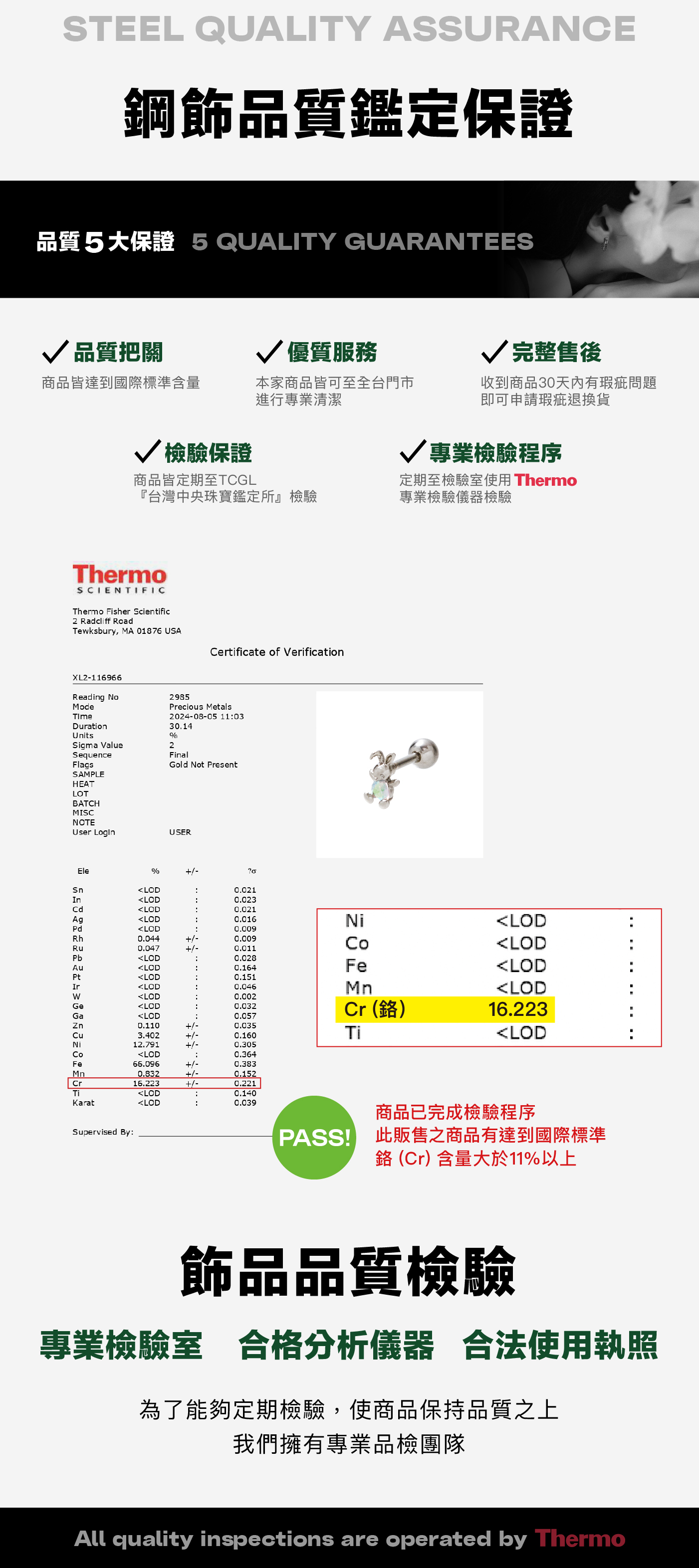 ● 耳針材質:316 不鏽鋼