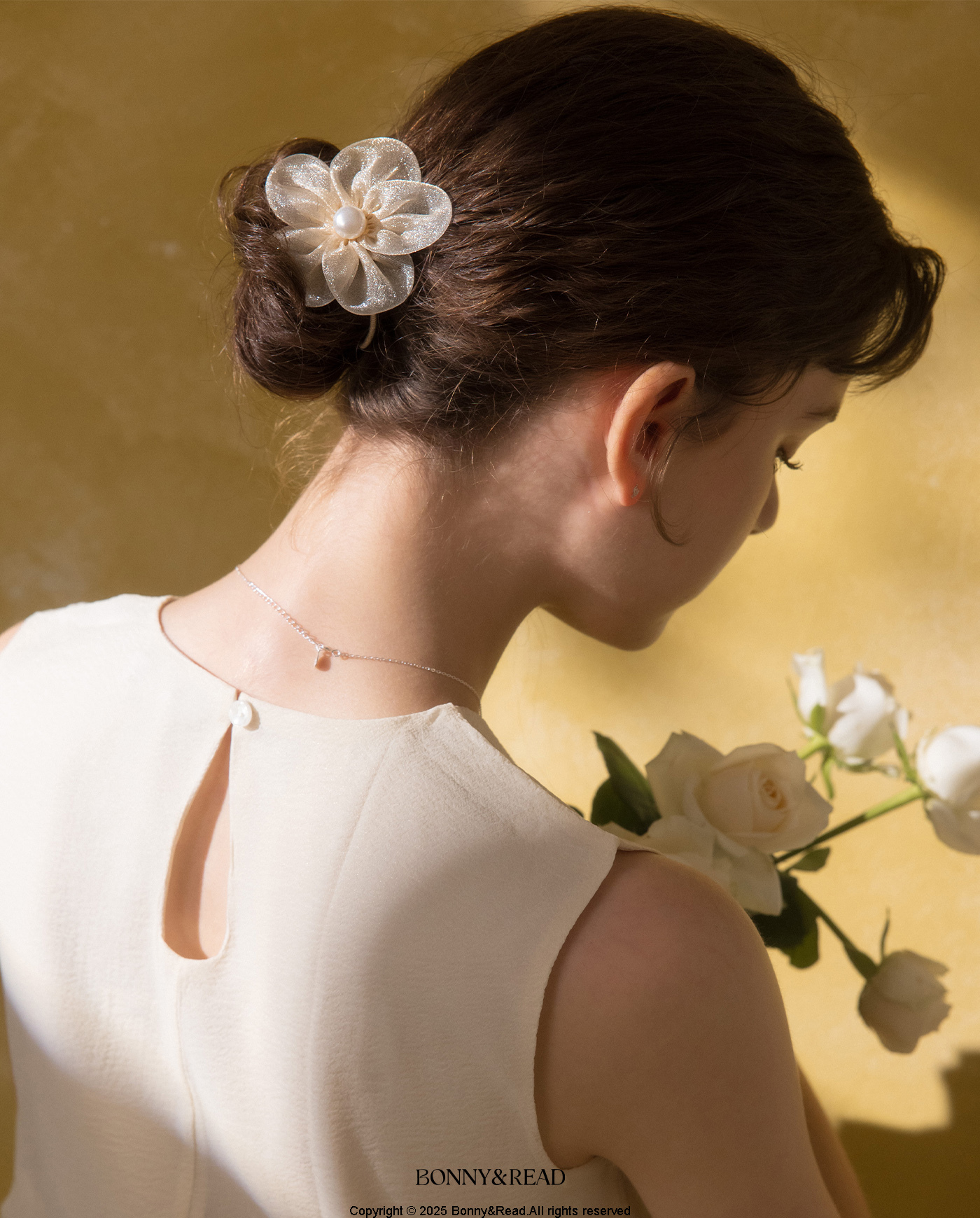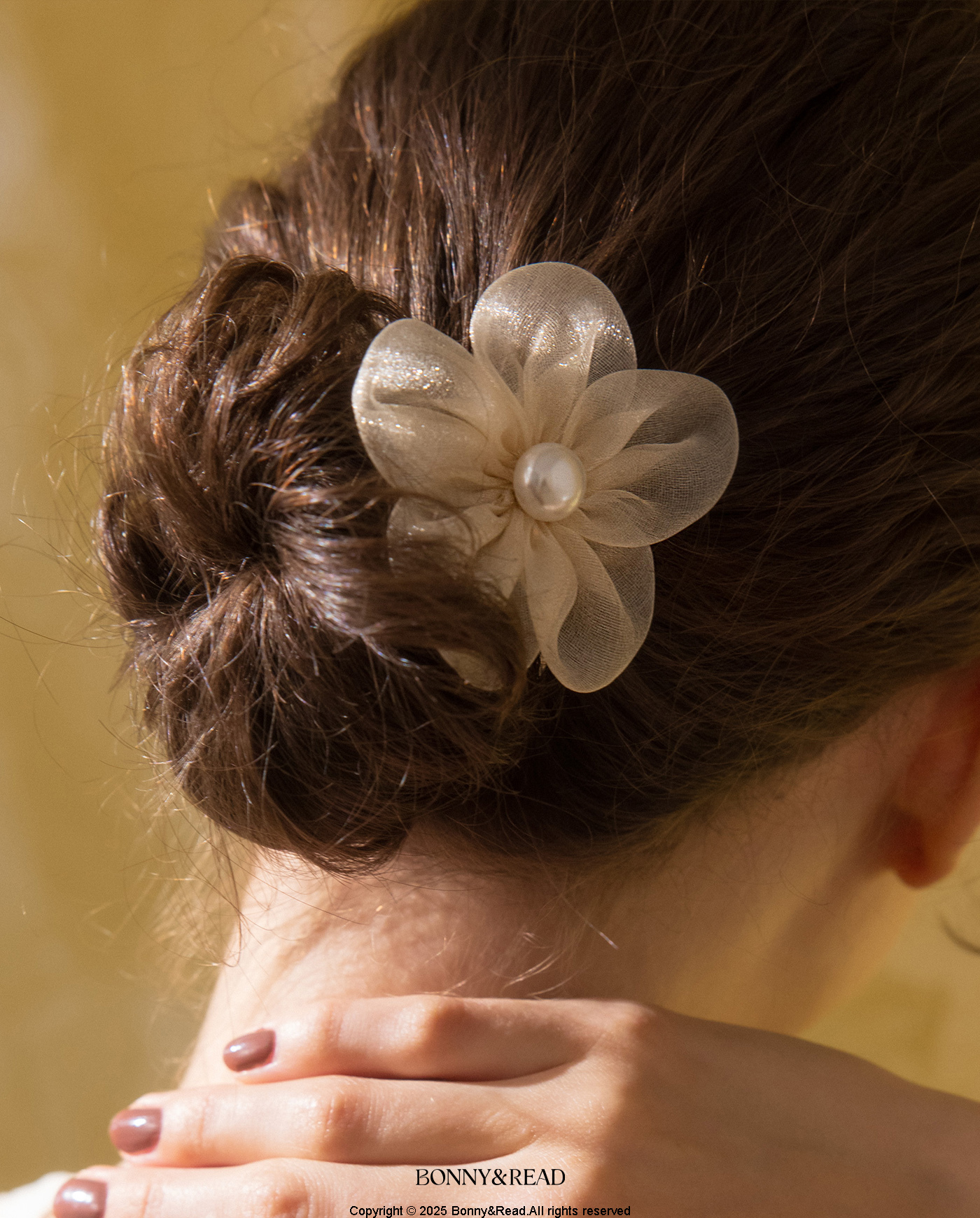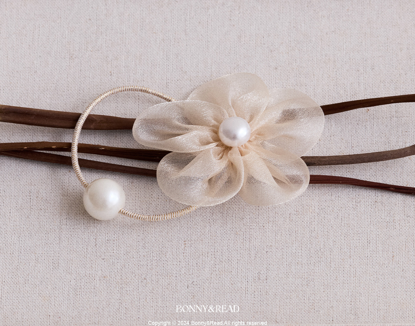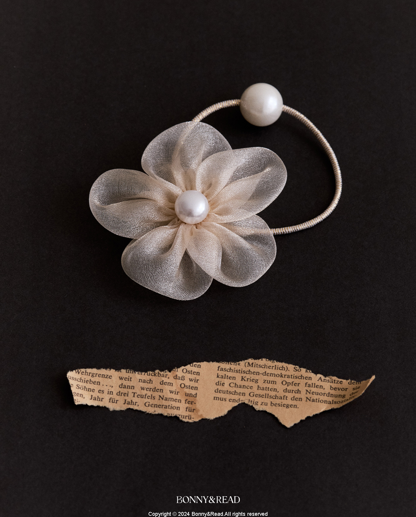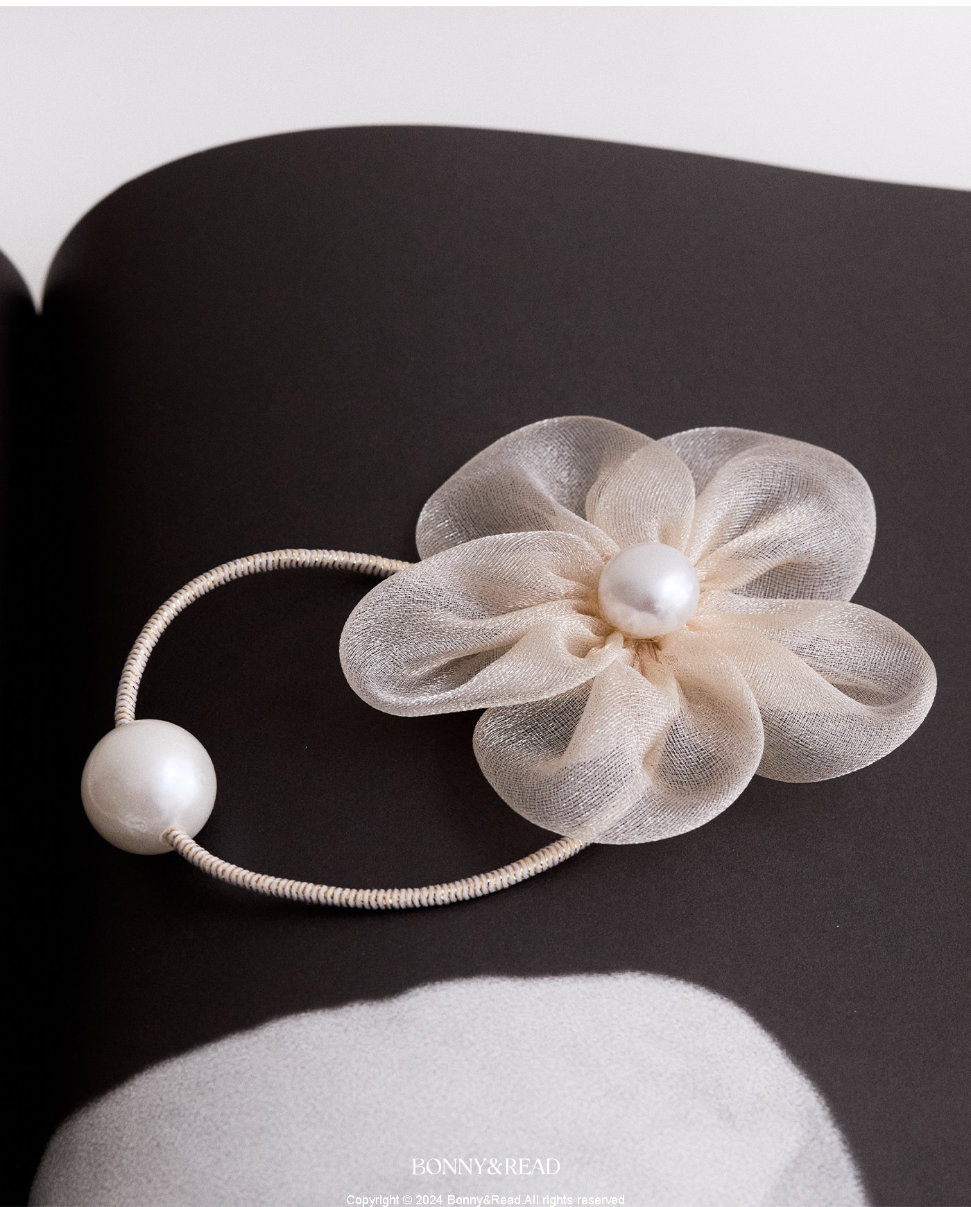 ● 商品材質:紗 / 彈性髮圈 / 壓克力仿珍珠