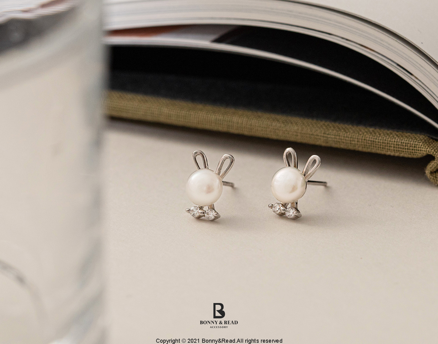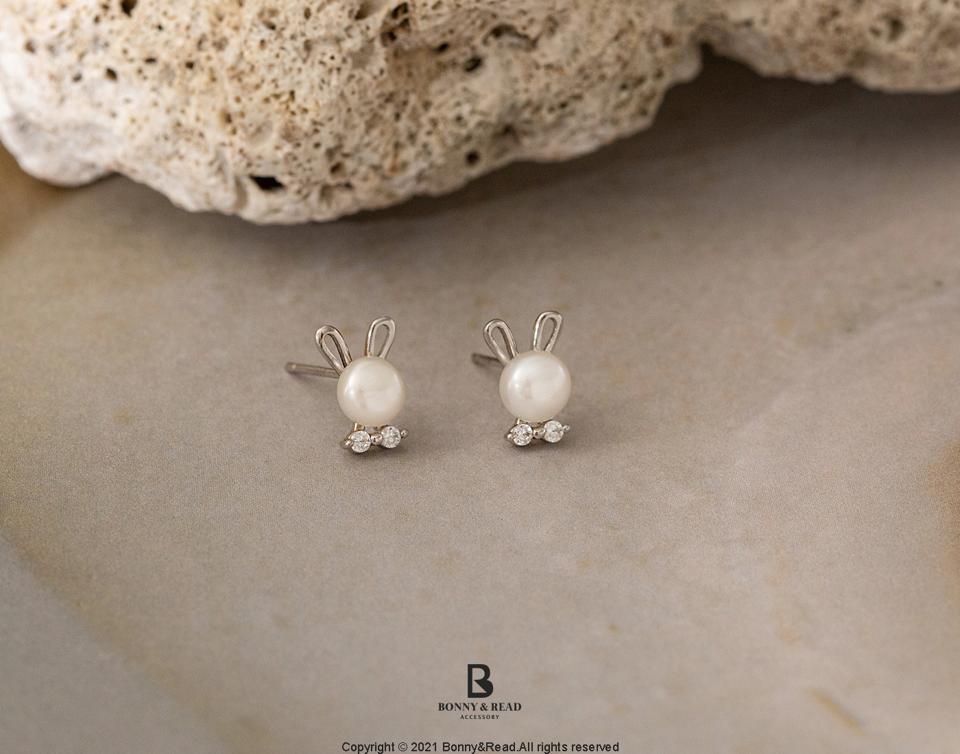 [純銀] 珍珠月兔耳環 / Pearl Moon Rabbit Earring