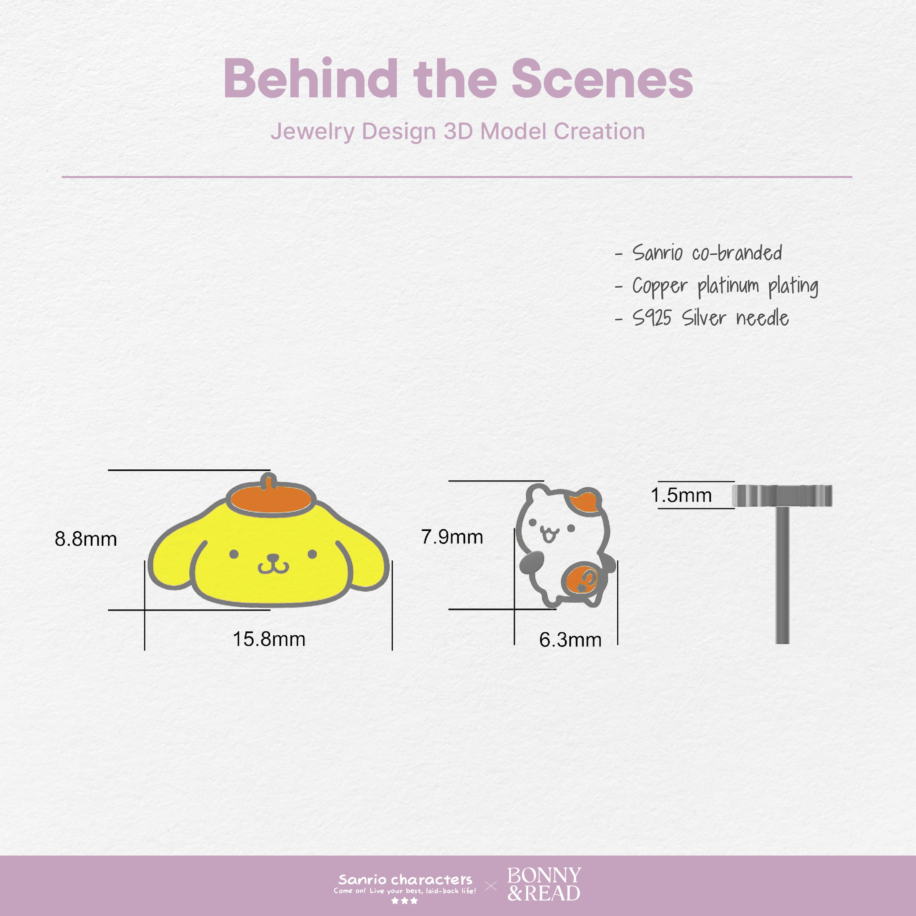 [三麗鷗聯名/銀針] 布丁狗與倉鼠耳環 / Pom Pom Purin And Muffin Earring