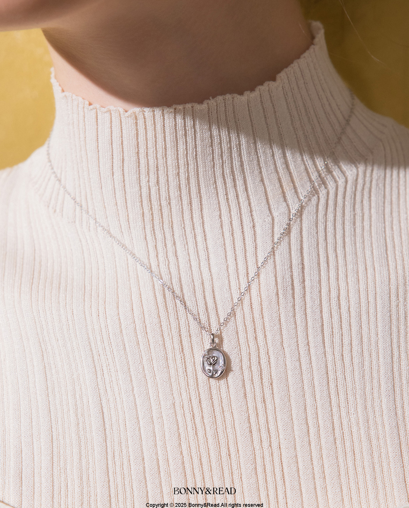 [純銀] 薔薇花鏡鎖骨鍊 / 2色 / Rosette Mirror Necklace