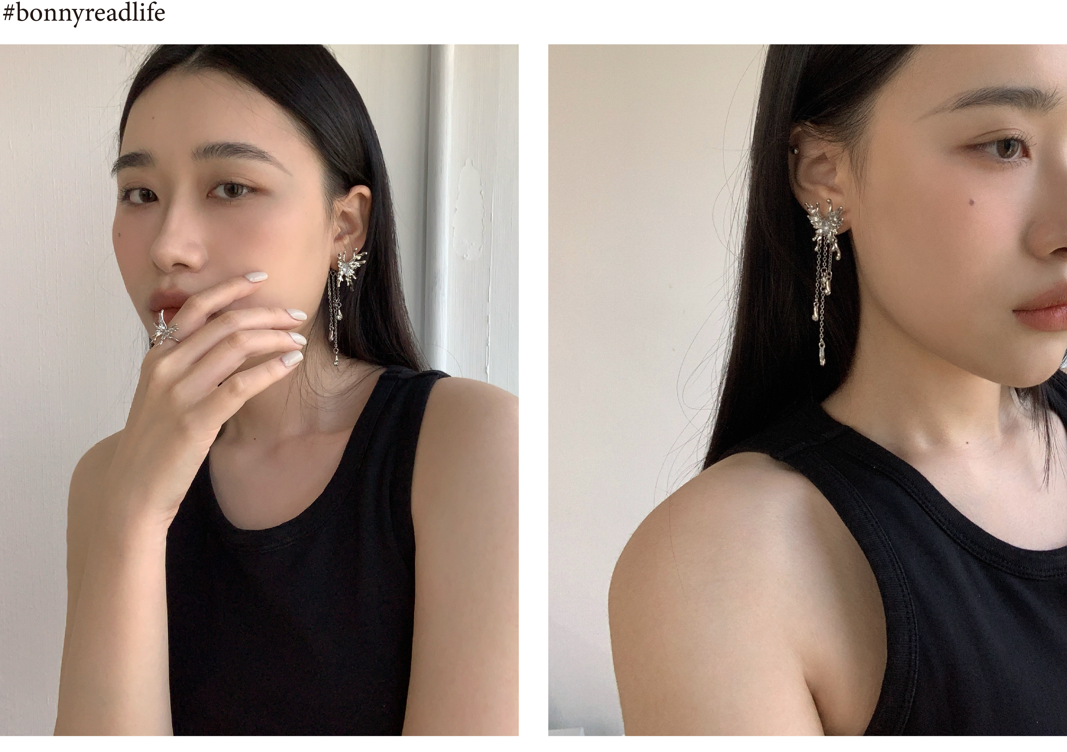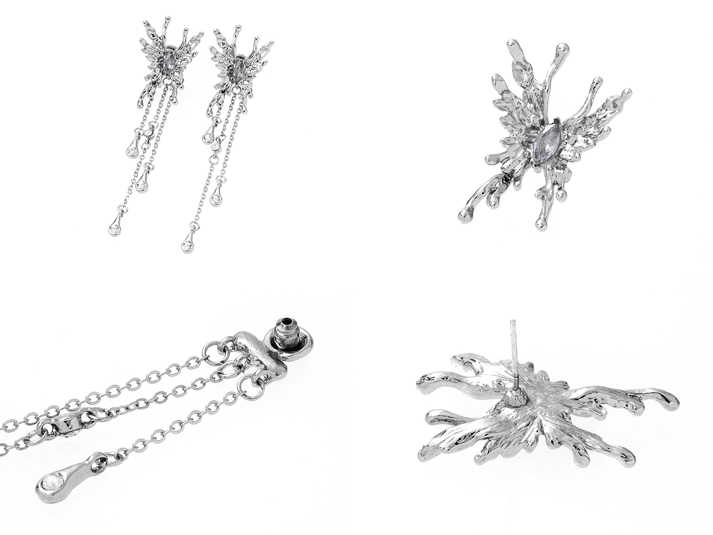 ● 耳環SIZE長寬約:蝴蝶-3.2 cm x 2 cm / 鏈條-7.5 cm