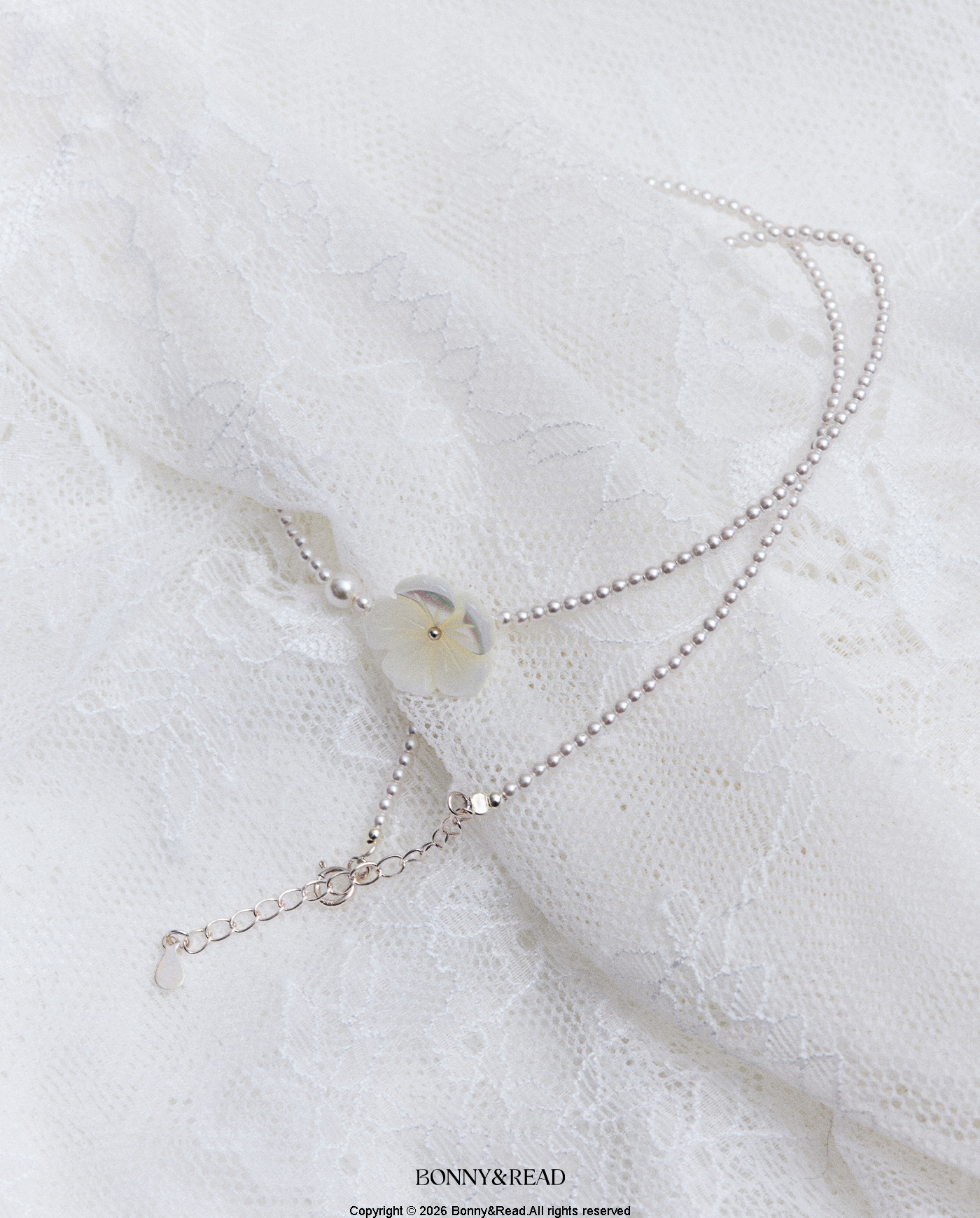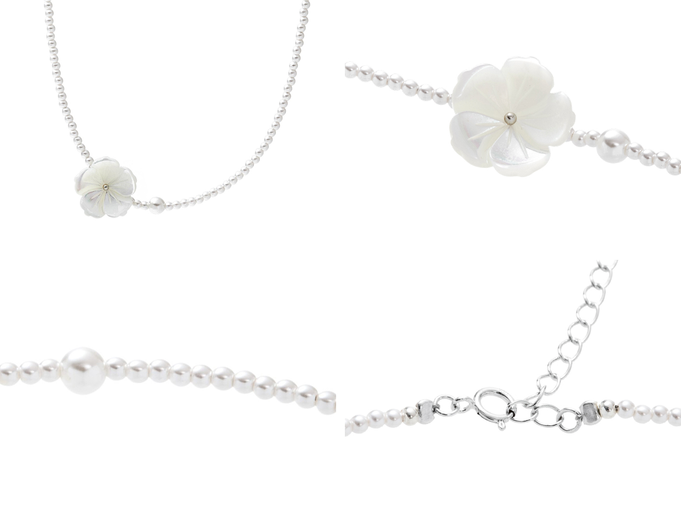 [預購] [純銀] 貝殼銀花鎖骨鍊 / Shell Silver Flower Necklace