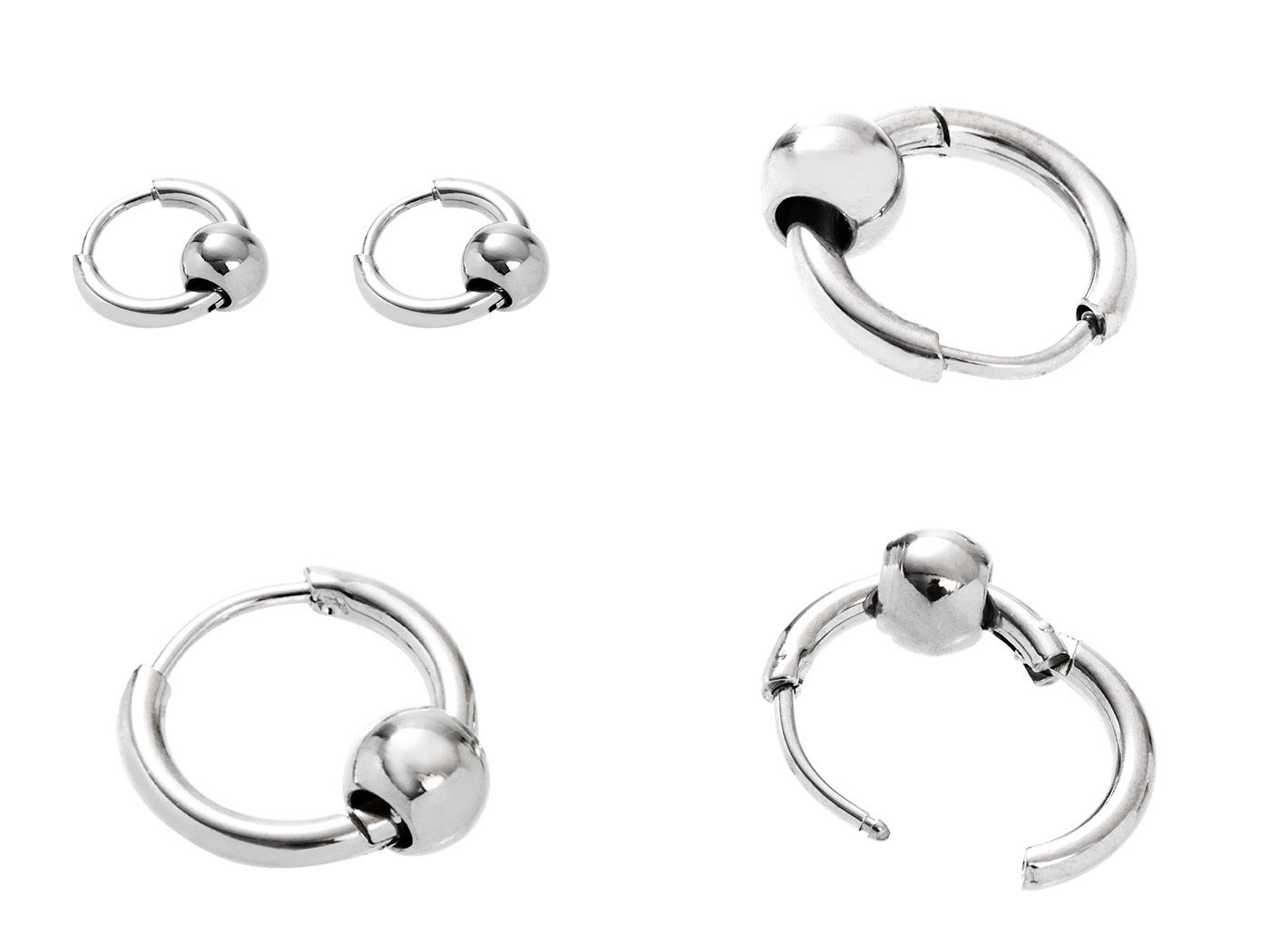 [韓國] [鋼飾] 銀序圓珠耳環 / 2 size / Silver Order Sphere Earring