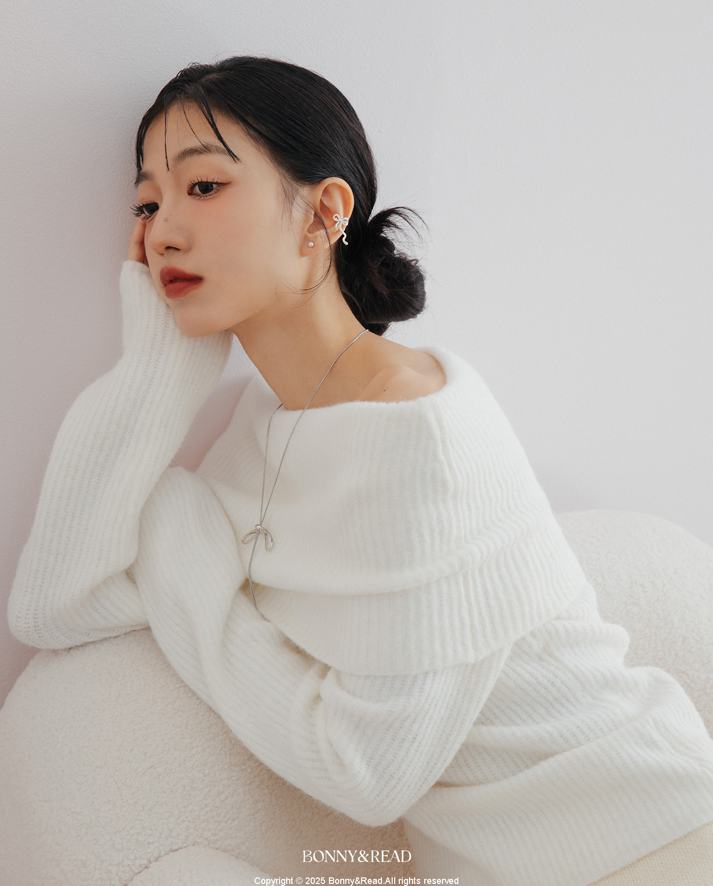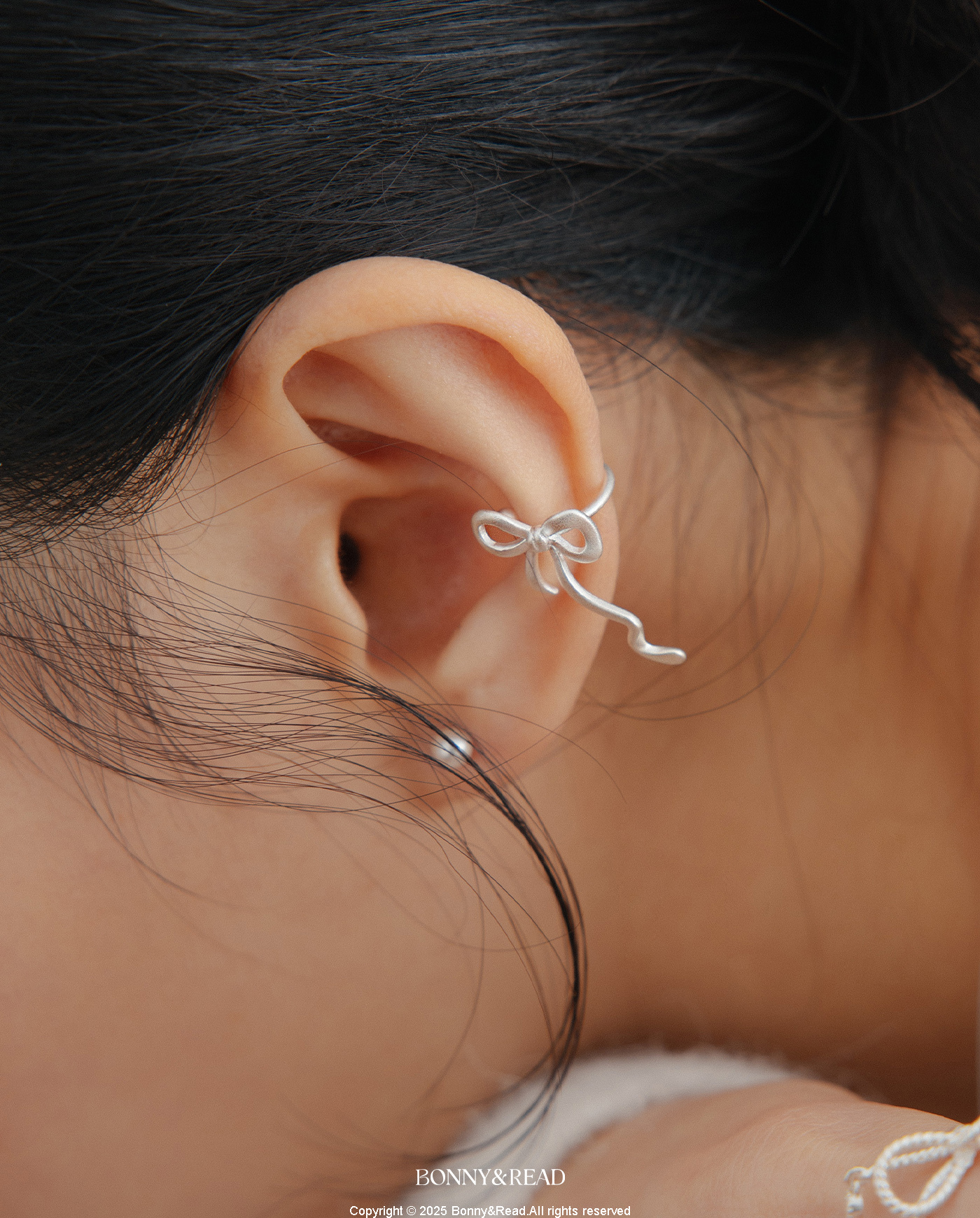[純銀] 銀光蝴蝶結耳扣 / Silver Bow Ear Cuff