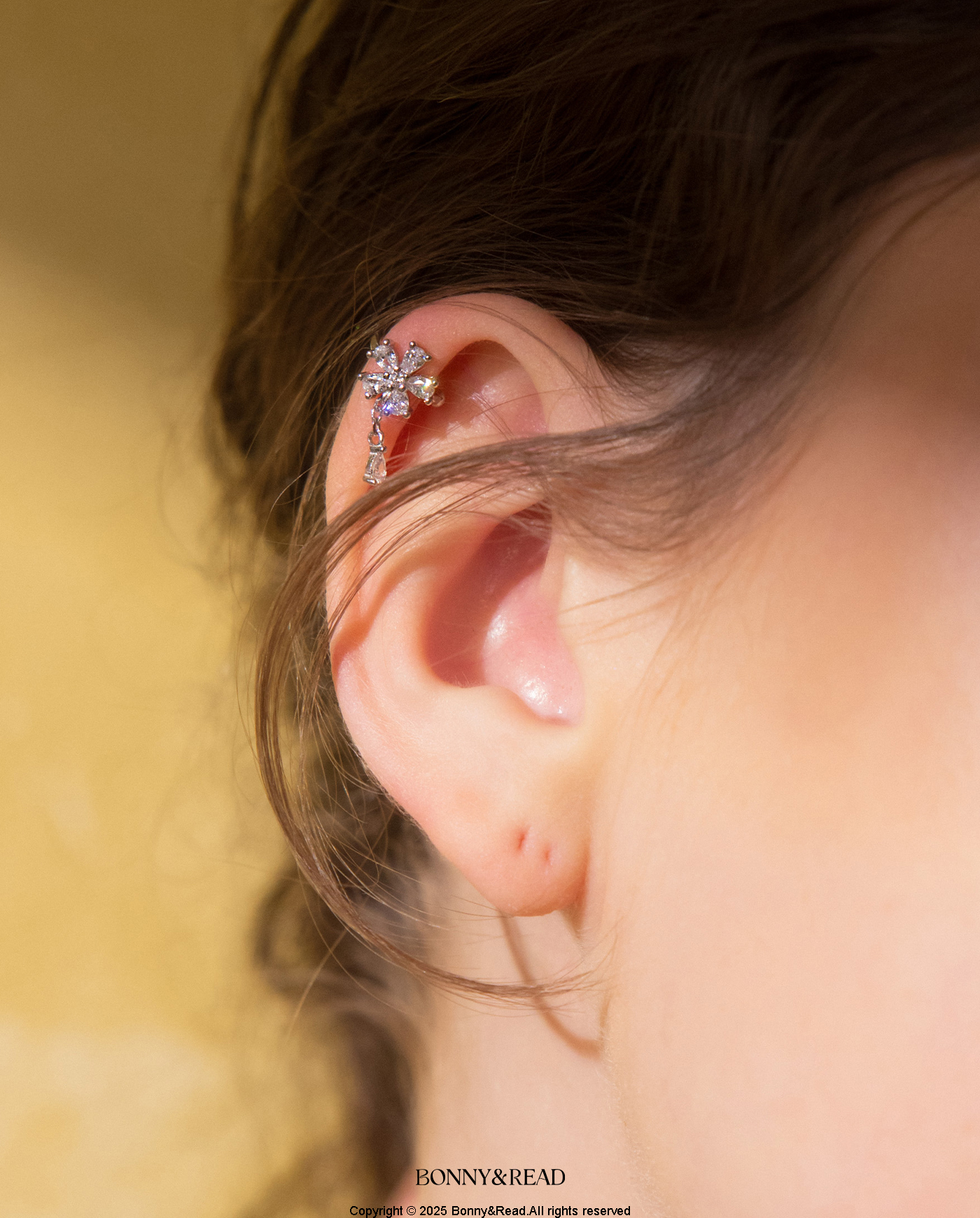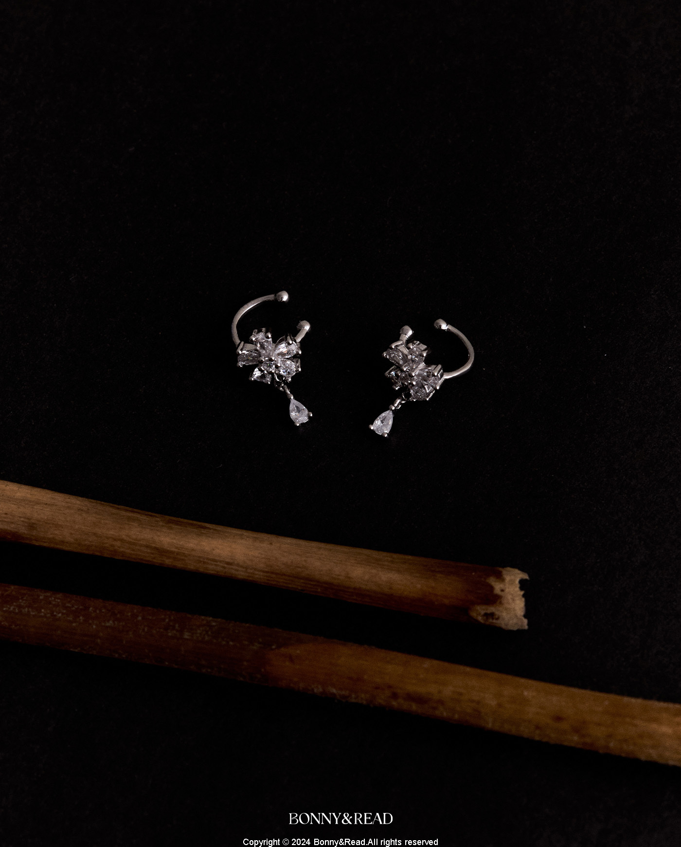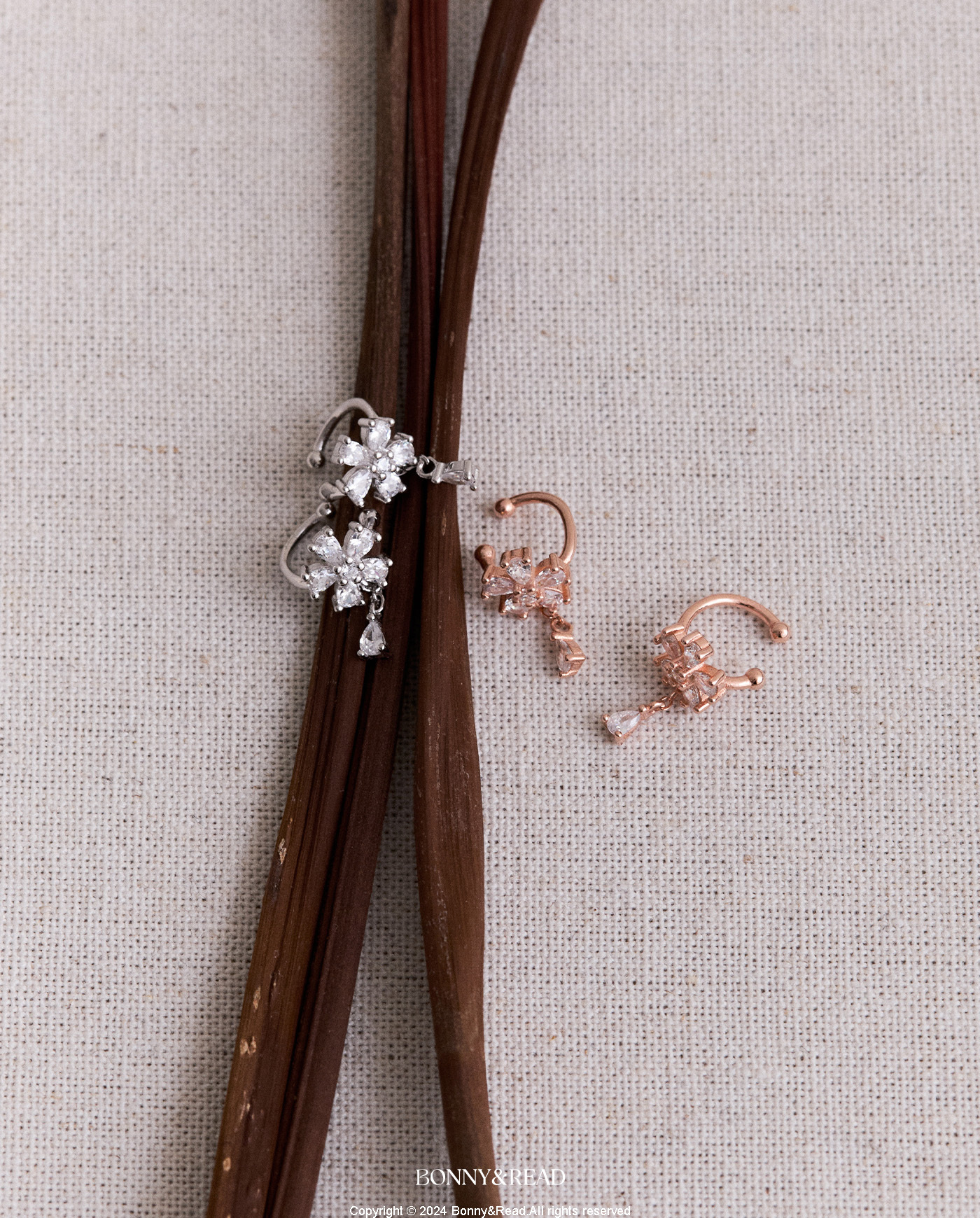 [純銀] 晶瑩花淚耳扣 / 2色 / Sparkling Flower Drop Ear Cuff