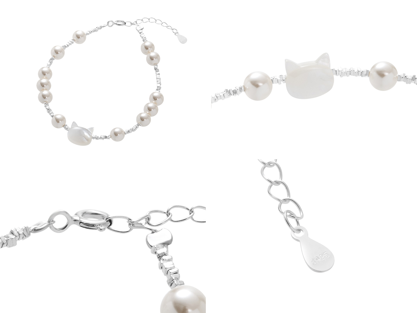 [預購] [純銀] 珍珠貓語手鍊 / Starlight Kitty Bracelet