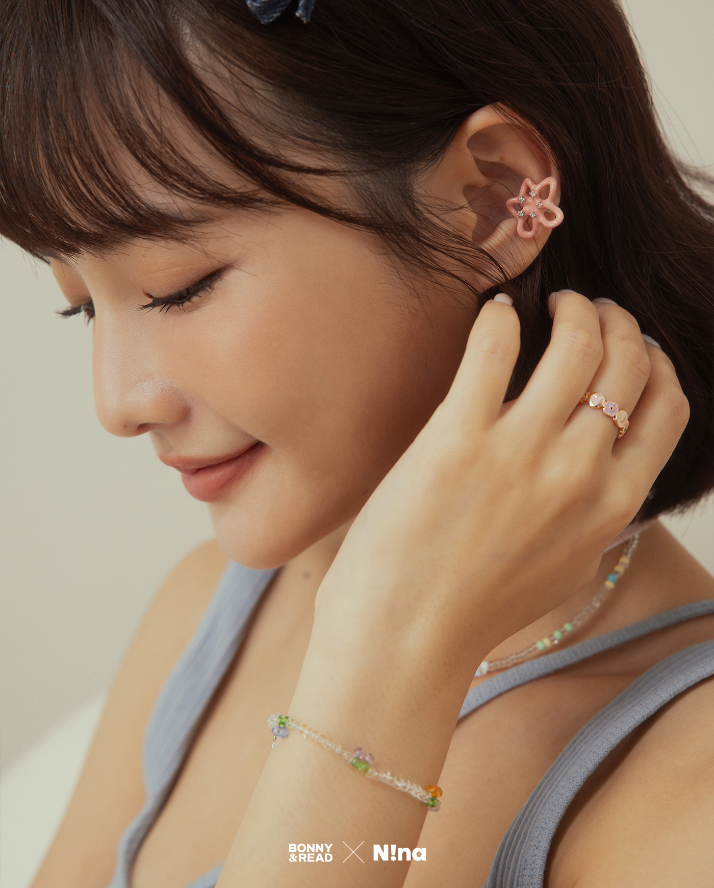 [Nina聯名款] 草莓糖花耳扣 / 單售 / Strawberry Candy Flower Ear Cuff