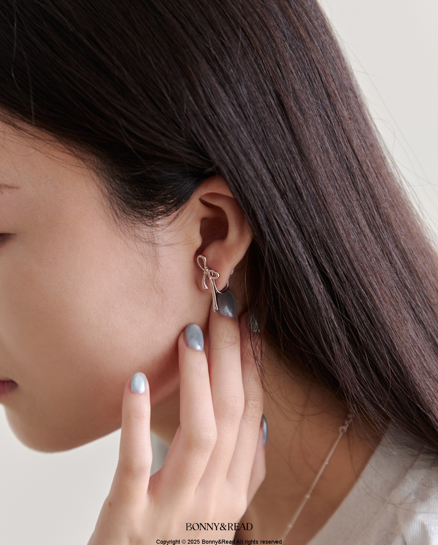 銀絲蝴蝶結夾式耳環 / Whispering Ribbon Ear Clip