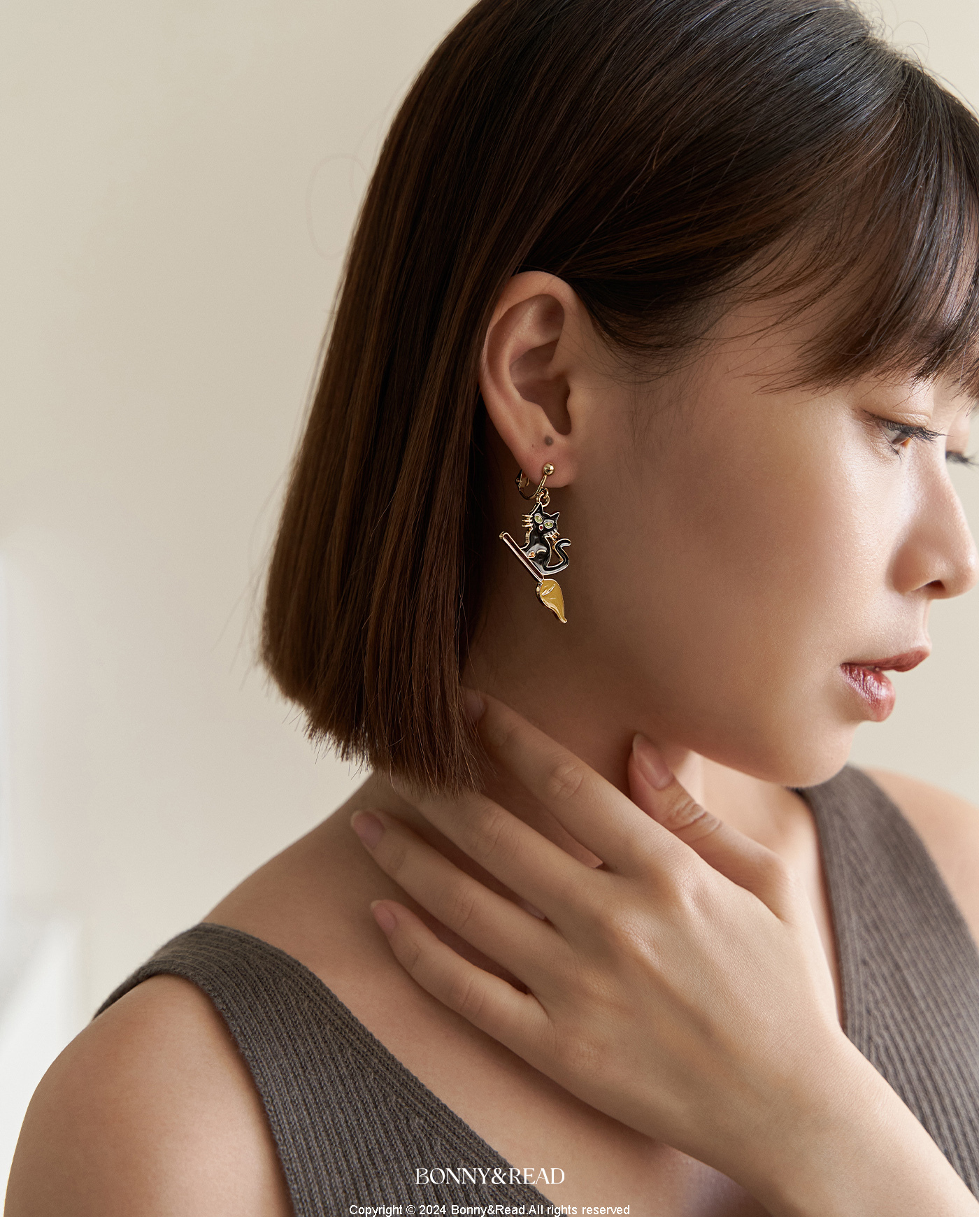 [韓國] 女巫的黑貓夾式耳環 / Witch's Black Cat Ear Clip